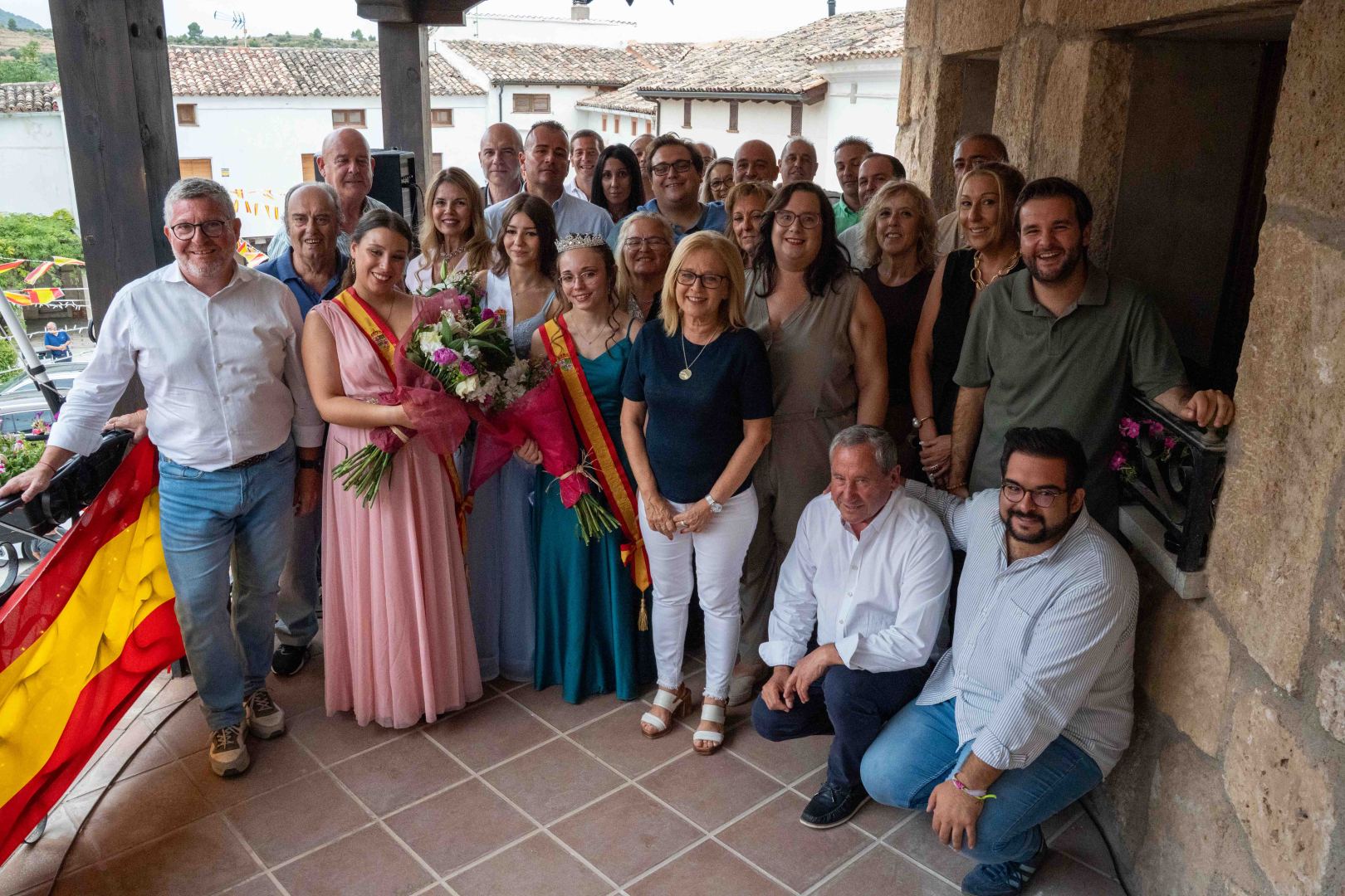 La reina de las fiestas de 2024, Elena Amador, se despidió con emoción de sus vecinos antes de ceder la banda y el ramo a la nueva reina de 2025, Paula Fuentes, quien también dirigió unas palabras llenas de ilusión al pueblo congregado en la plaza.