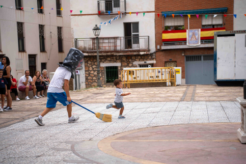 La jornada de ayer comenzó a las cinco de la tarde con la salida de los cabezudos en la Plaza del Ayuntamiento, ese anuncio inconfundible de que las fiestas han comenzado y que se repite desde hace, al menos, 50 años. Este año lo volvían a hacer con un aire renovado gracias a la restauración llevada a cabo en el invierno de 2024 por Mayte Rodríguez, almorcileña de adopción y de corazón. El Capitán, el Diablillo, el Payasete, Popeye y doña Rogelia regresaron a las calles, devueltos a la vida por los peñistas de El Descontrol, que los llevaron entre sustos y risas, escobazos y caramelos, despertando la ilusión de los niños y la nostalgia de los mayores.