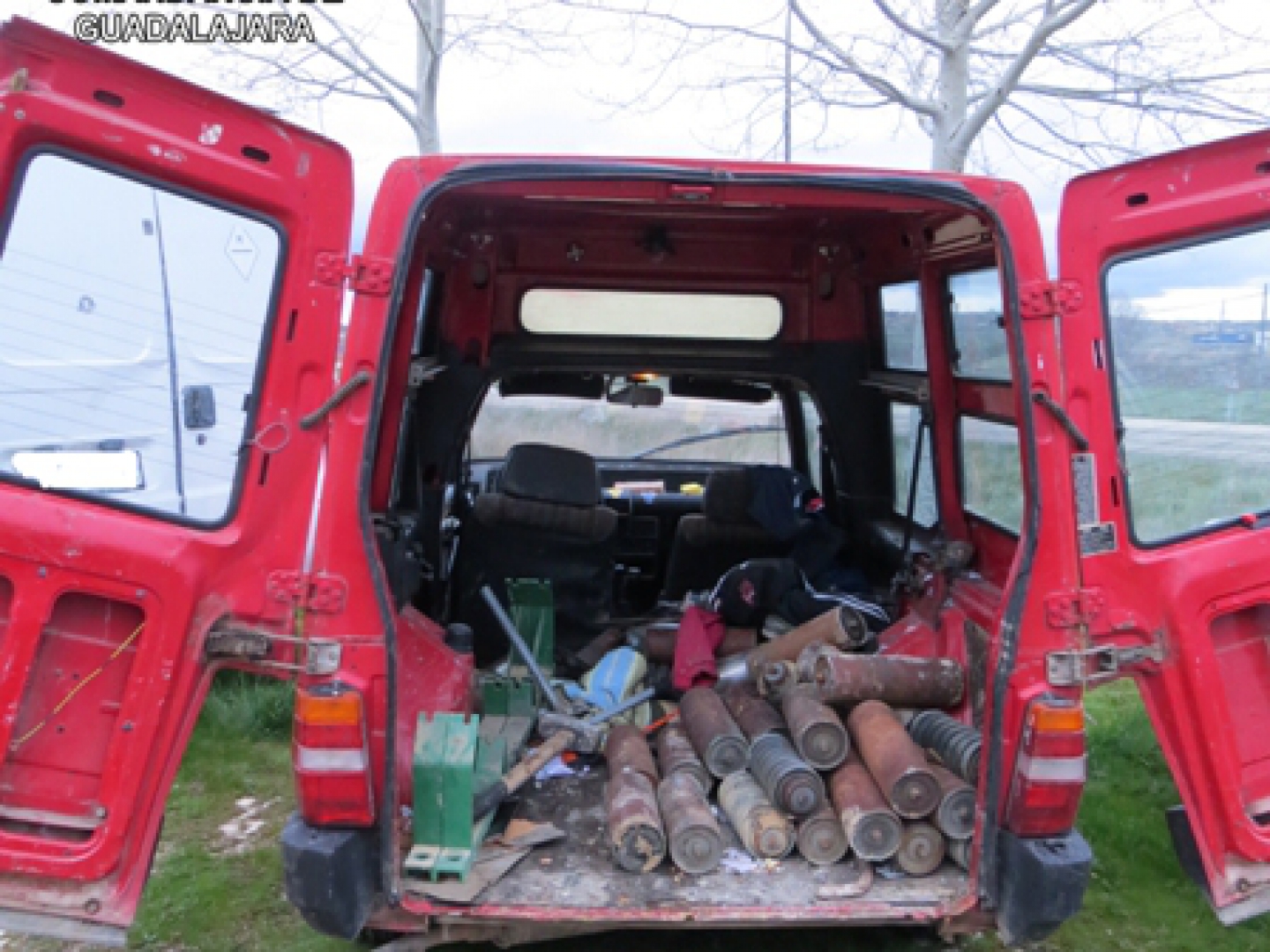 Inmediatamente, una patrulla de la Guardia Civil de Torremocha del Campo se dirigió al lugar indicado por el ciudadano, sorprendiendo a dos personas que estaban desmontando una cinta transportadora empleada en la extracción de áridos, por lo que ambos fueron detenidos. En las proximidades del lugar en el que se encontraban los dos detenidos fue localizada una furgoneta cargada con 52 rodillos que habían sido sustraídos de la citada explotación.