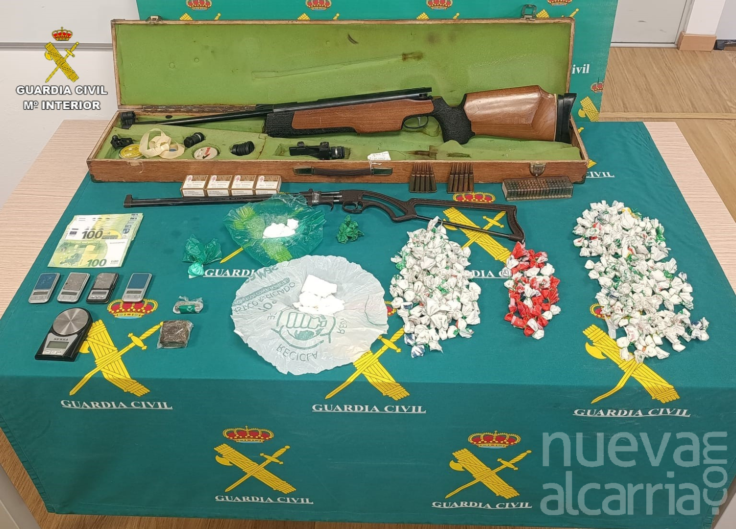 También se incautó un rifle de fabricación artesanal del calibre 22 mm, una escopeta de aire comprimido, munición de distinto calibre y 1.765 euros en efectivo en billetes de distinto valor.