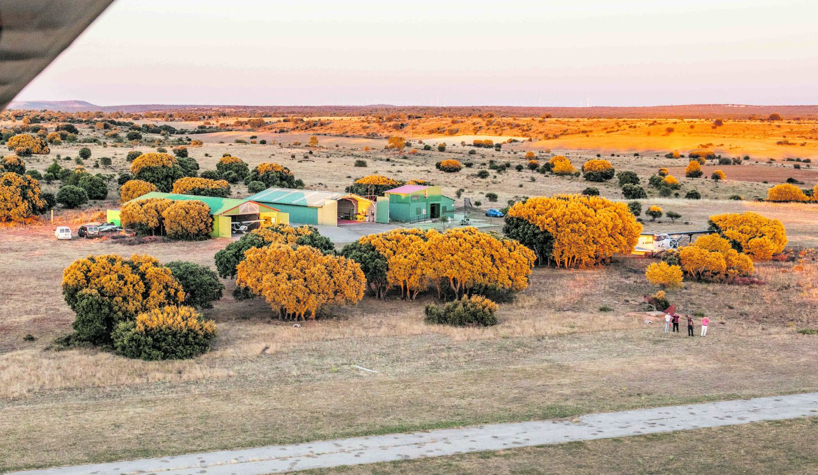 Ese enfoque se concreta en el propio aeródromo, donde la gestión del entorno natural se apoya en el único rebaño activo que queda en las 29 pedanías del municipio. Lo mantiene Jesús Morencos, ingeniero agrónomo y agricultor, descendiente de varias generaciones de pastores. Desde su cosechadora con GPS, que maneja con manos libres -aunque la normativa le obliga a ir sentado-, combina tecnología puntera y saber tradicional.
