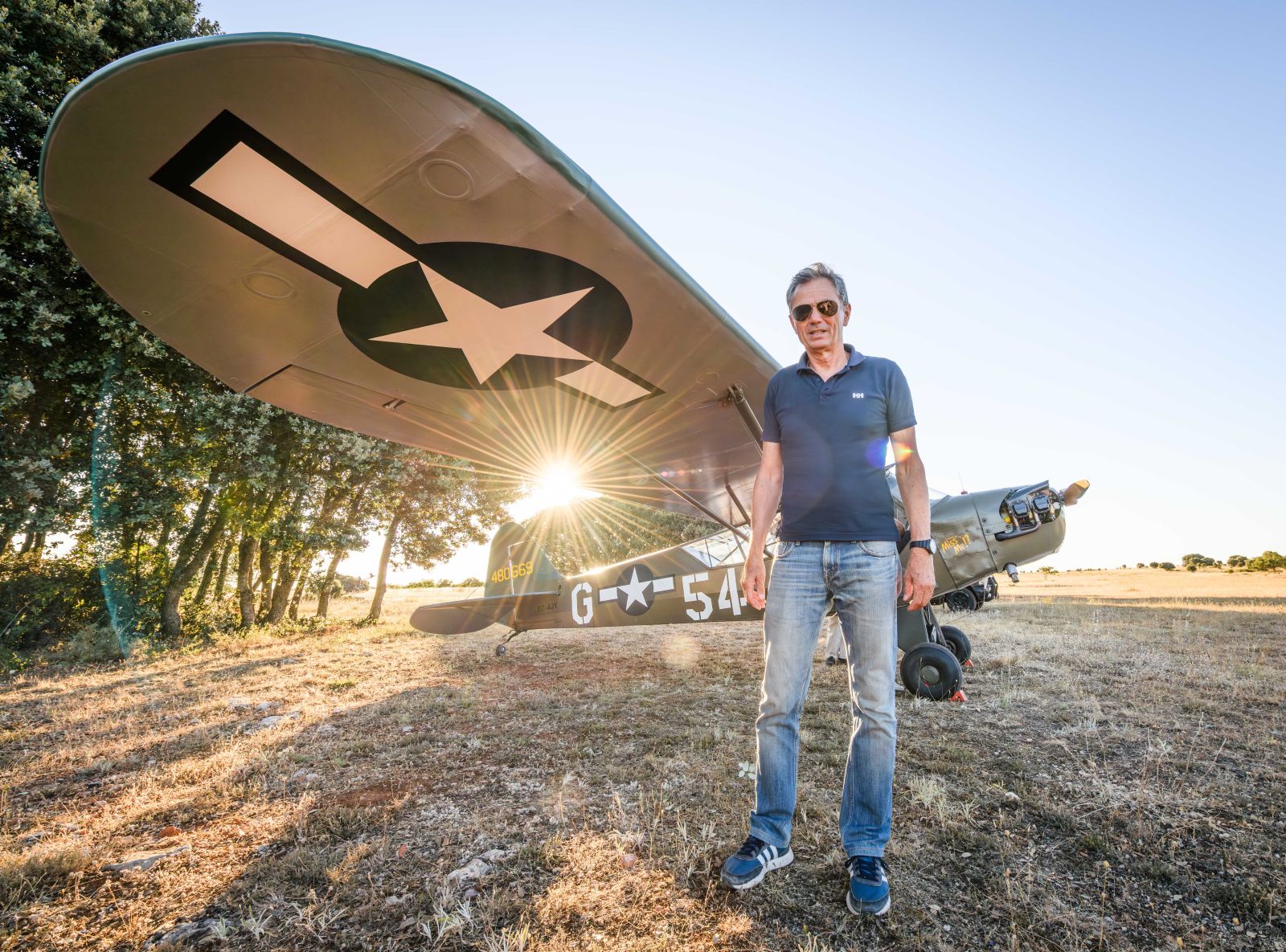 El compromiso de José Antonio con la preservación histórica se materializa de forma tangible en la restauración de un avión de observación de la Segunda Guerra Mundial, compañero del conocido “Missme!?”. Este aparato, empleado en misiones clave como la dirección de carros de combate en el frente en batallas tan relevantes como la de las Ardenas, fue restaurado minuciosamente durante cinco años. Con él, José Antonio ha participado en tres vuelos conmemorativos a Normandía, incluyendo los aniversarios 80º y 85º del Día D en junio de 2024. Estos vuelos fueron patrocinados por la constructora aeronáutica Airbus.