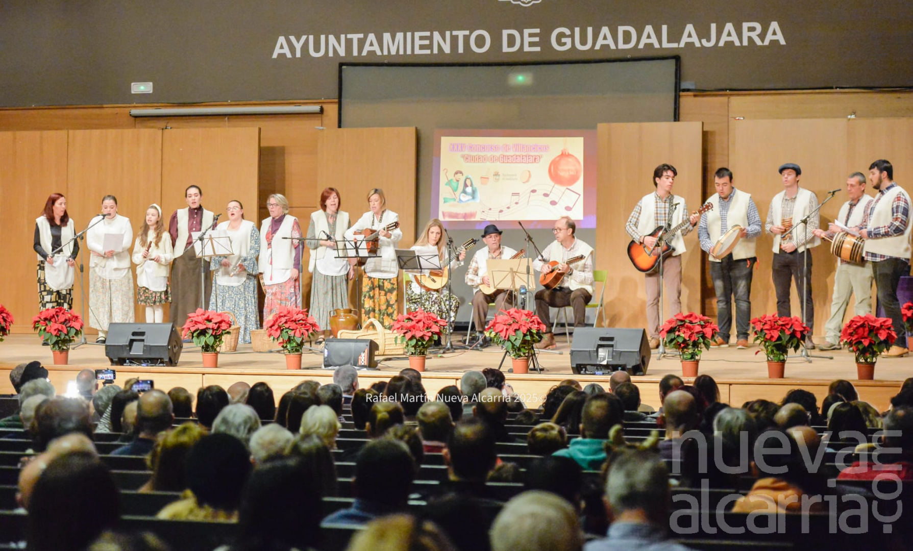 Guadalajara ha vivido hoy una de sus citas más entrañables con la celebración del XXXV Concurso de Villancicos “Ciudad de Guadalajara”, que este año estrenaba escenario en el Salón de Actos del Centro Municipal Integrado Eduardo Guitián, en el barrio de Aguas Vivas. La nueva ubicación, que se ha quedado pequeña ante la gran afluencia, se llenó hasta el último rincón con un público entusiasta que acompañó con aplausos cada interpretación, creando un ambiente cálido y festivo que anunciaba la llegada de la Navidad.