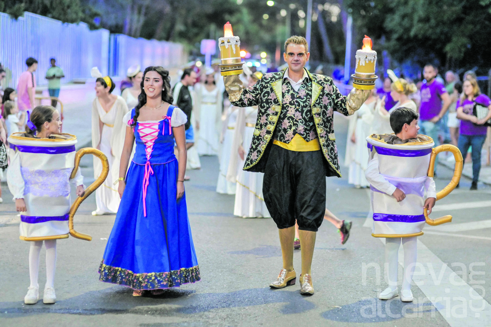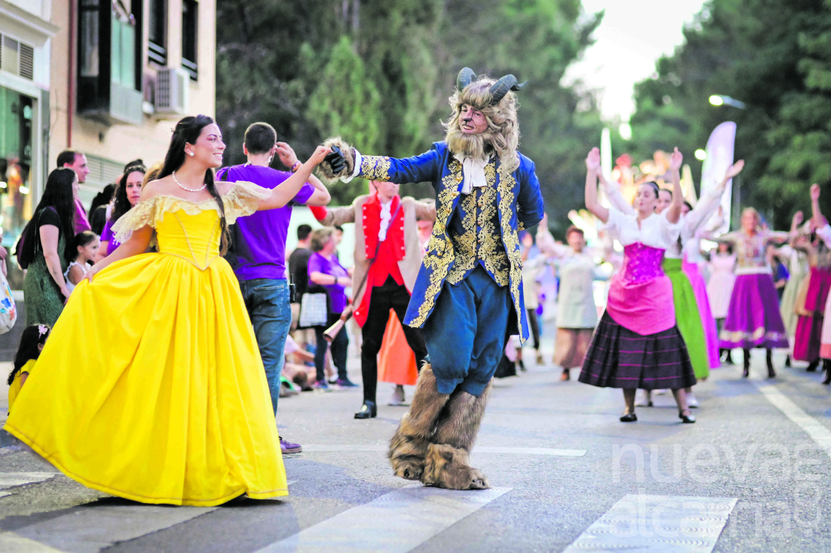 Aplausos entre el público cuando aparecía el elenco de La Bella y la Bestia y los componentes del Teatro Salesianos que han representado el clásico Disney durante toda la primavera. La escena que representaron fue el asalto al castillo de la Bestia. Como un batallón de cortesanos, tras las banderas del colegio, les seguían los bailarin y el festín con el que la Bestia sorprendió a Bella. También se coló Gastón. No faltaron Lumiere, Din Don, la Señora Pots, Chip, ... subidos a una recreación del castillo que lucía más encantado que nunca.