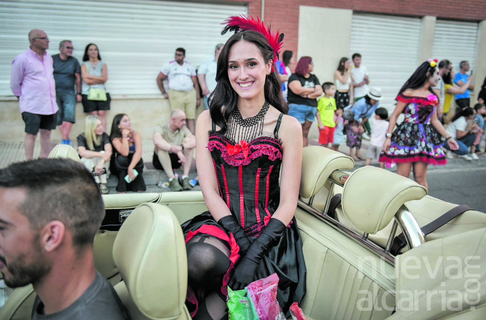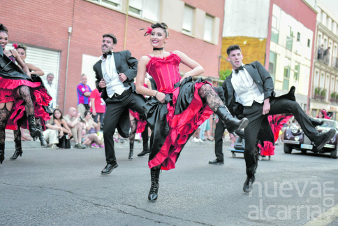 Después, un ballet cancan emulando al clásico Mouling Rouge trajo el glamoour de la Belle Epoque a la capital alcarreña. Un espectáculo que animó la primera parte del desfile tras un parón de movimiento, además con un coche de época, el mítico Albaicín burdeos que acompañaba a los bailarines.