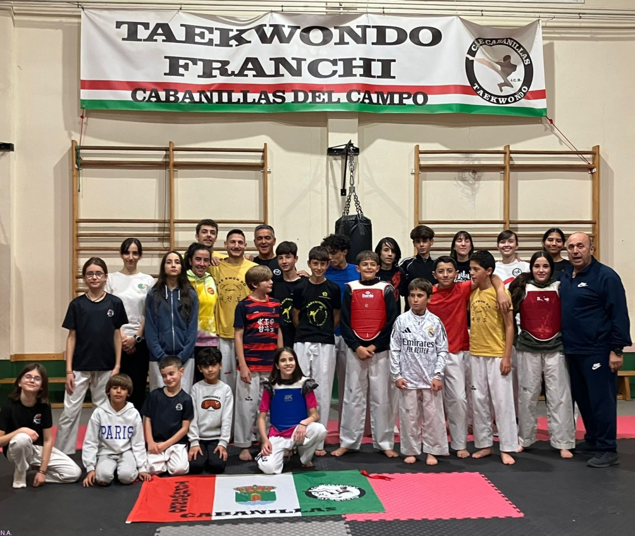 El Club Taekwondo Cabanillas estuvo representado por 25 deportistas, acompañados por el equipo de coachs —Mariana, Laura, Iván y David—, así como por su maestro, Franchi.