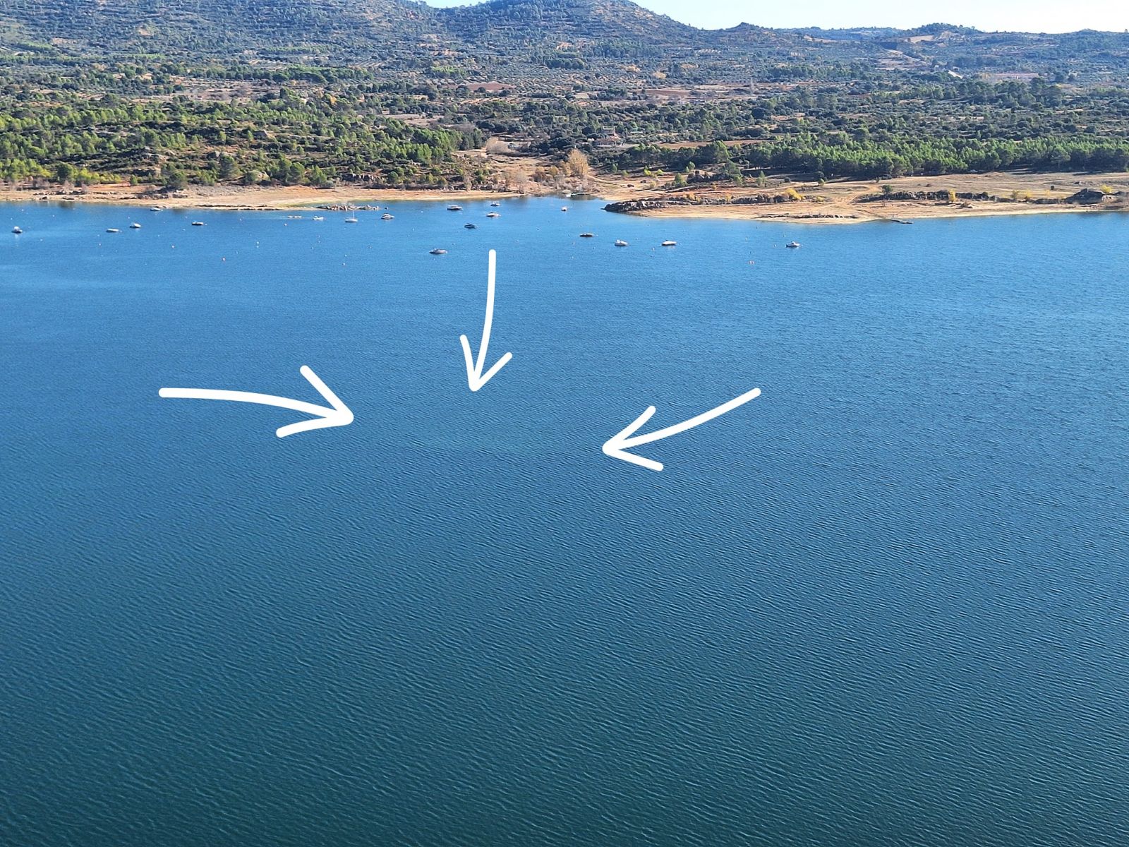 En este paisaje, a finales de 2019, algunos vecinos comenzaron a notar algo extraño: una forma oscura bajo la lámina de agua, como si el embalse guardara un secreto a punto de revelarse. Este fenómeno, a priori extraño es, por desgracia, muy conocido por los vecinos del entorno cada vez que el embalse se ve sangrado por el trasvase al Segura.