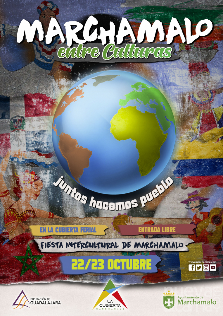 La Cubierta del Parque de Ferias de Marchamalo acogerá este fin de semana un nuevo evento en el calendario gallardo, con un amplio programa de actos para el sábado 22 y el domingo 23 de octubre. ‘Marchamalo entre Culturas’ será la primera Fiesta Intercultural en gran formato que se celebra en nuestra localidad, con dos jornadas completas en las que personas que conviven con nosotros en España procedentes de nueve países diferentes de todo el mundo, compartirán su folclore tradicional, cultura gastronómica, moda y música popular en un evento con un amplio programa de espectáculos y entrada libre. Estarán representadas tanto la cultura latinoamericana, con representación de la República Dominicana, Venezuela, Colombia, Bolivia, Argentina y Ecuador; como la de Europa del este, con notable presencia de Rumanía y Bulgaria; y la norteafricana, con gastronomía de Marruecos; todo ello en un evento que permitirá tanto la compra de productos como el consumo en el propio lugar y disfrutar de una amplísima variedad de espectáculos que detallamos a continuación. El Ayuntamiento de Marchamalo organiza y promociona este gran evento multicultural, que cuenta también con el patrocinio de la Diputación de Guadalajara, y la colaboración de numerosas asociaciones y colectivos de personas expatriadas en nuestra provincia.