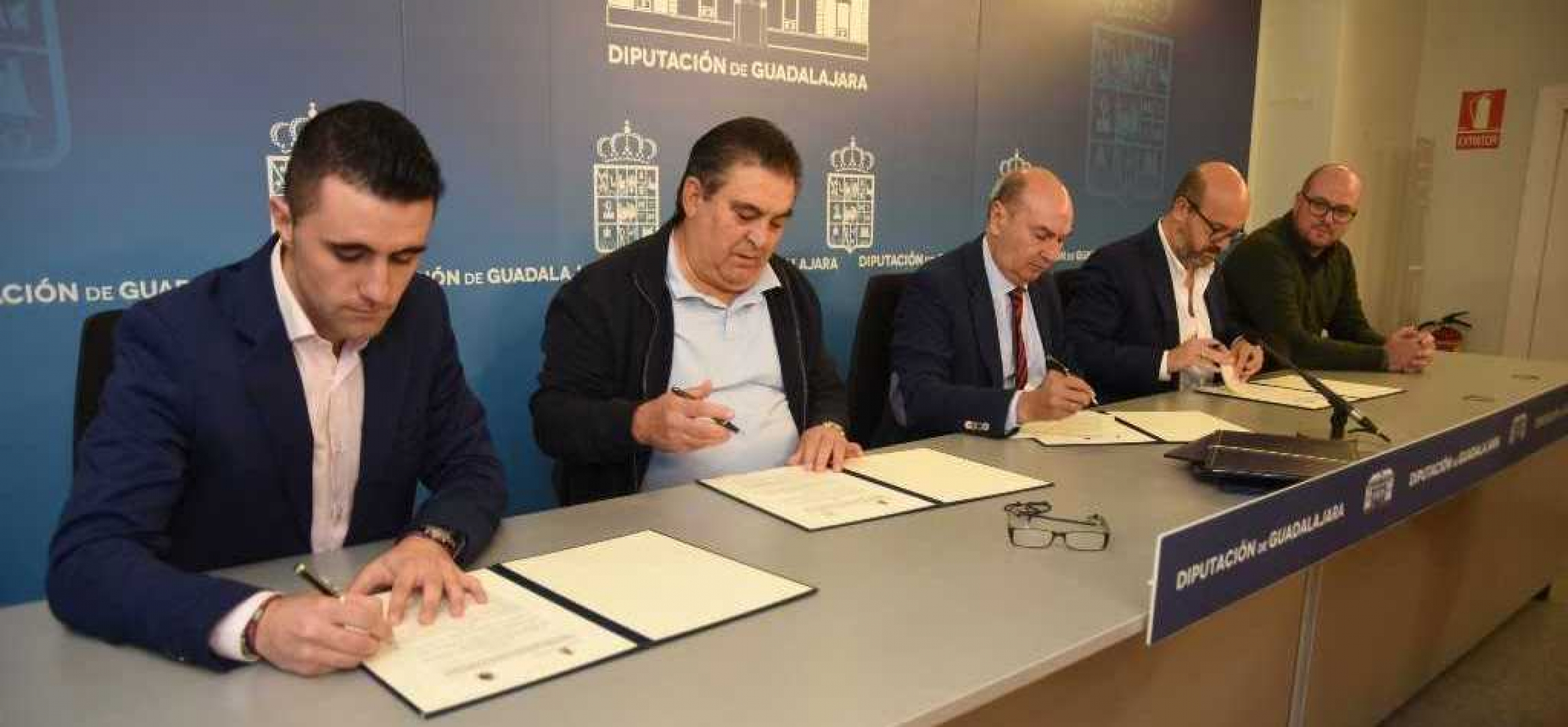 El presidente de la Diputación de Guadalajara, José Manuel Latre, ha firmado tres convenios de colaboración en materia deportiva, en este caso para la promoción del deporte del fútbol con los equipos Club Deportivo Azuqueca, Club Deportivo Marchamalo y Club Deportivo Dínamo Guadalajara, este último en la categoría femenina. En representación de los mismos han estado presentes los presidentes Miguel Ángel Martínez, Juan Antonio del Castillo y Juan Flores, respectivamente, los cuales han agradecido la colaboración de la Diputación tanto a nivel económico como por la cesión gratuita de las plazas de estancia en la Residencia de la Institución Provincial. También ha estado presente el diputado delegado de Deportes, Lucas Castillo.