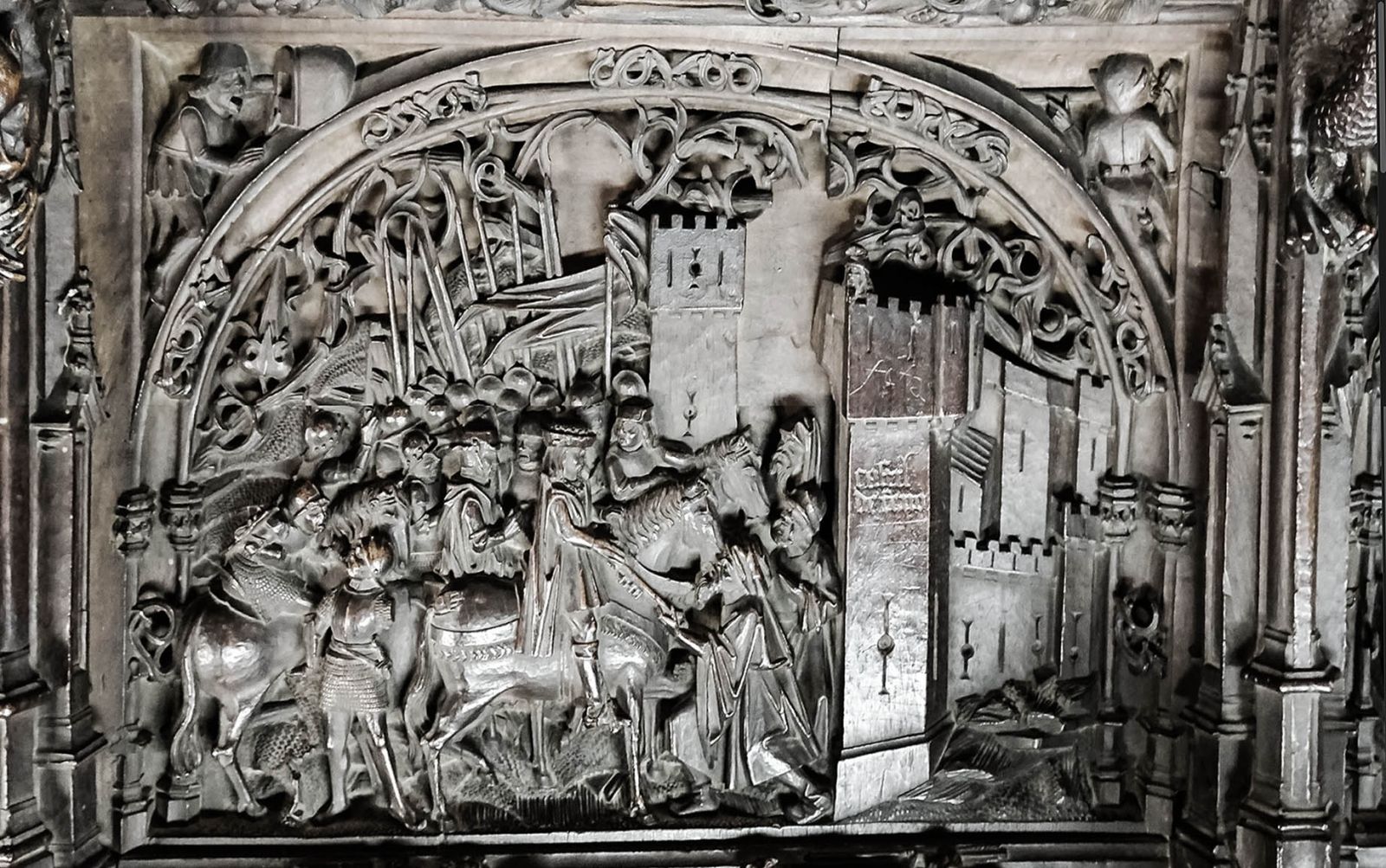 Una batalla de la Guerra de Granada en la silleria baja del coro de la Catedral de Toledo.