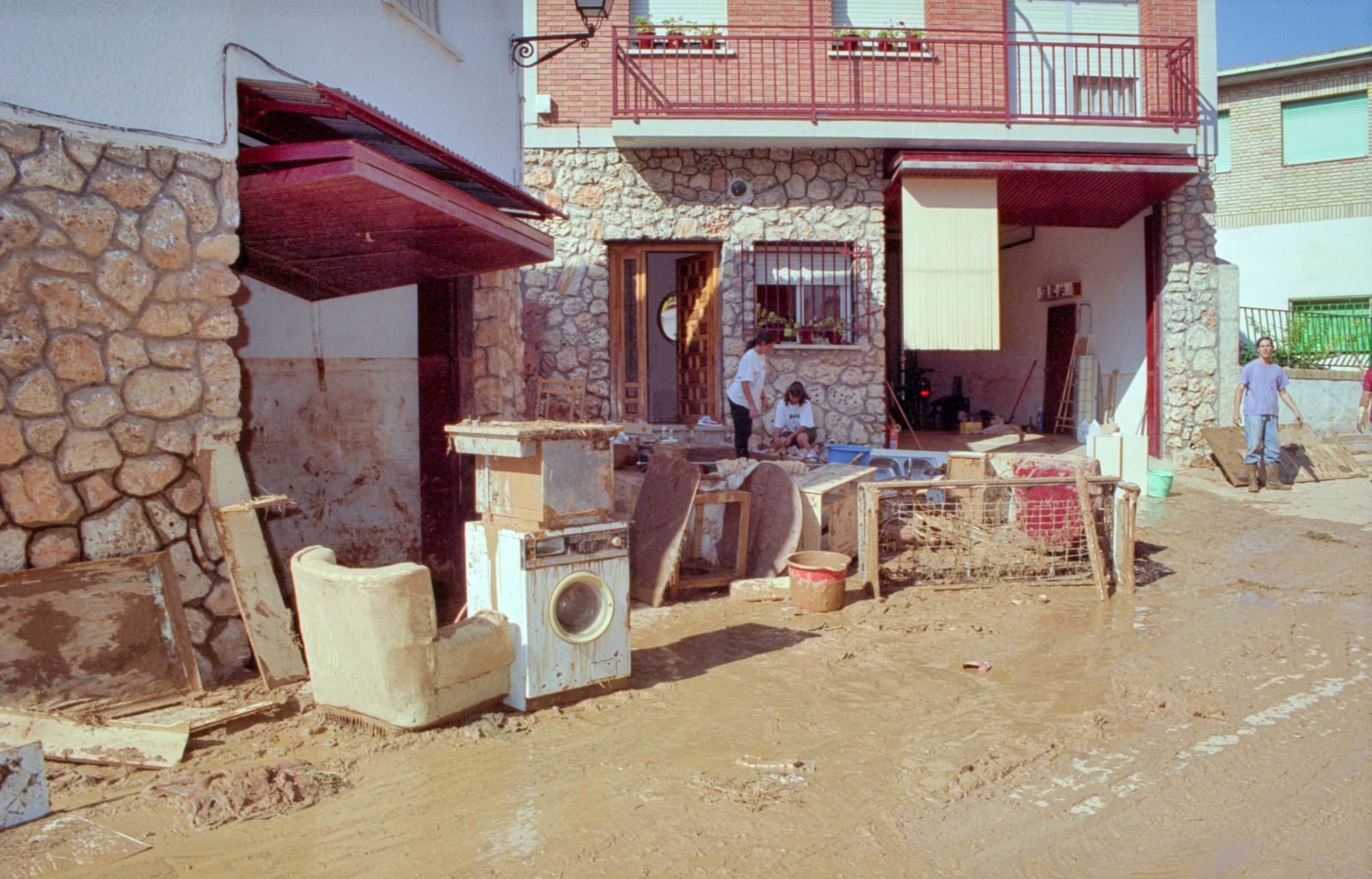 Sergio Villalba tenía 11 años. Lo vivió, en Almoguera, con el miedo de no saber si volvería a ver a su padre. “Estaba trabajando junto al río, en una presa, en el trasvase. No supimos nada de él hasta el día siguiente. Esa noche no dormí. Pensamos que el agua nos arrastraría cuando entró en la primera planta de mi casa. Vi coches flotando, bloques de asfalto. Recuerdo estar en la cama con mi madre, esperando. Cuando apareció mi padre, lloramos y dormimos abrazados toda la mañana. Hoy, cada vez que llueve fuerte, recojo a mis hijos y me voy a casa. Nadie lo entiende… salvo quien lo ha vivido”, afirma.