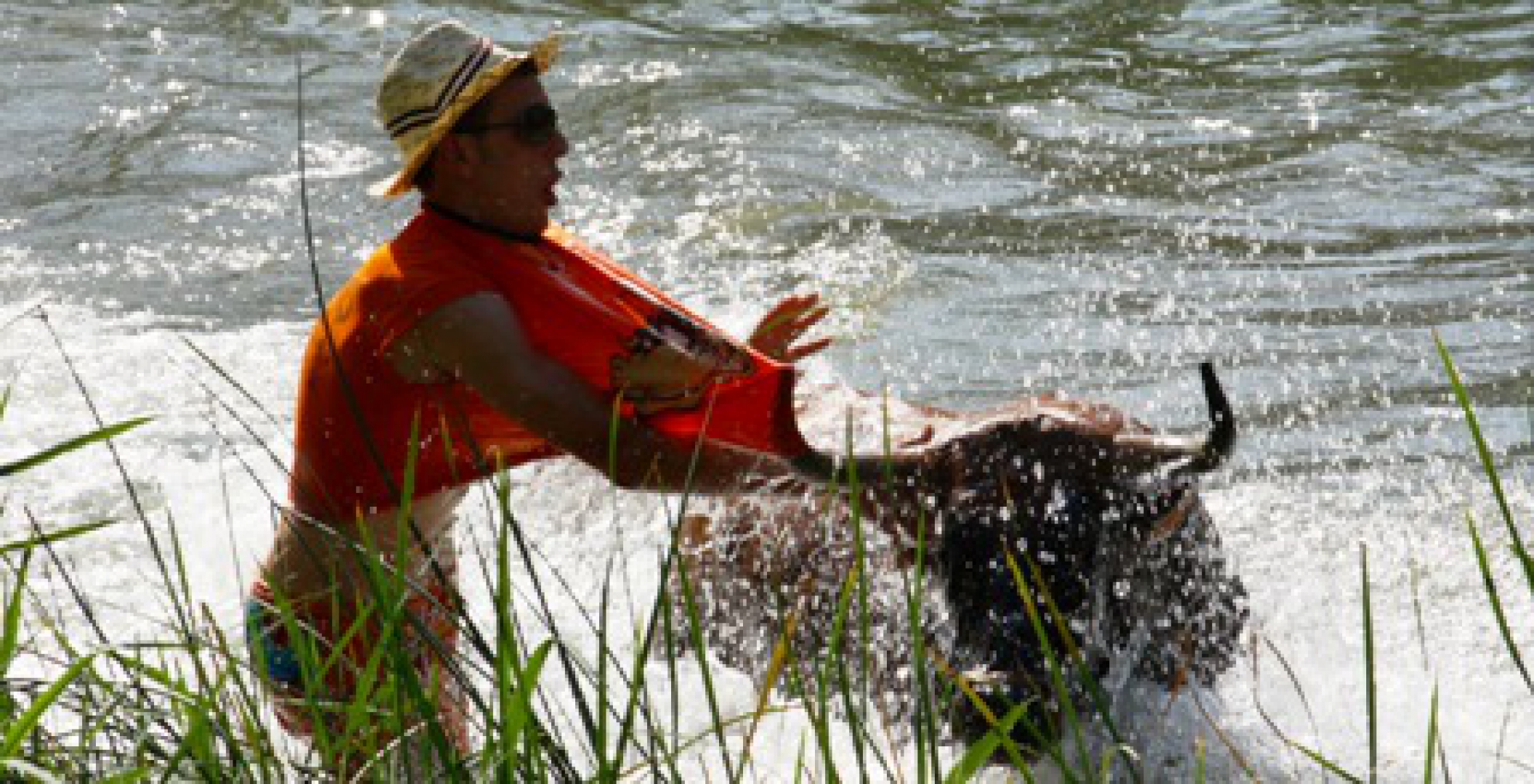 18:00 h. TRADICIONAL SUELTA DE VACAS POR EL TAJO CON 3 VACAS DE LA GANADERIA DE LOS MAÑOS Y 3 VACAS DE SAMUEL FLORES.