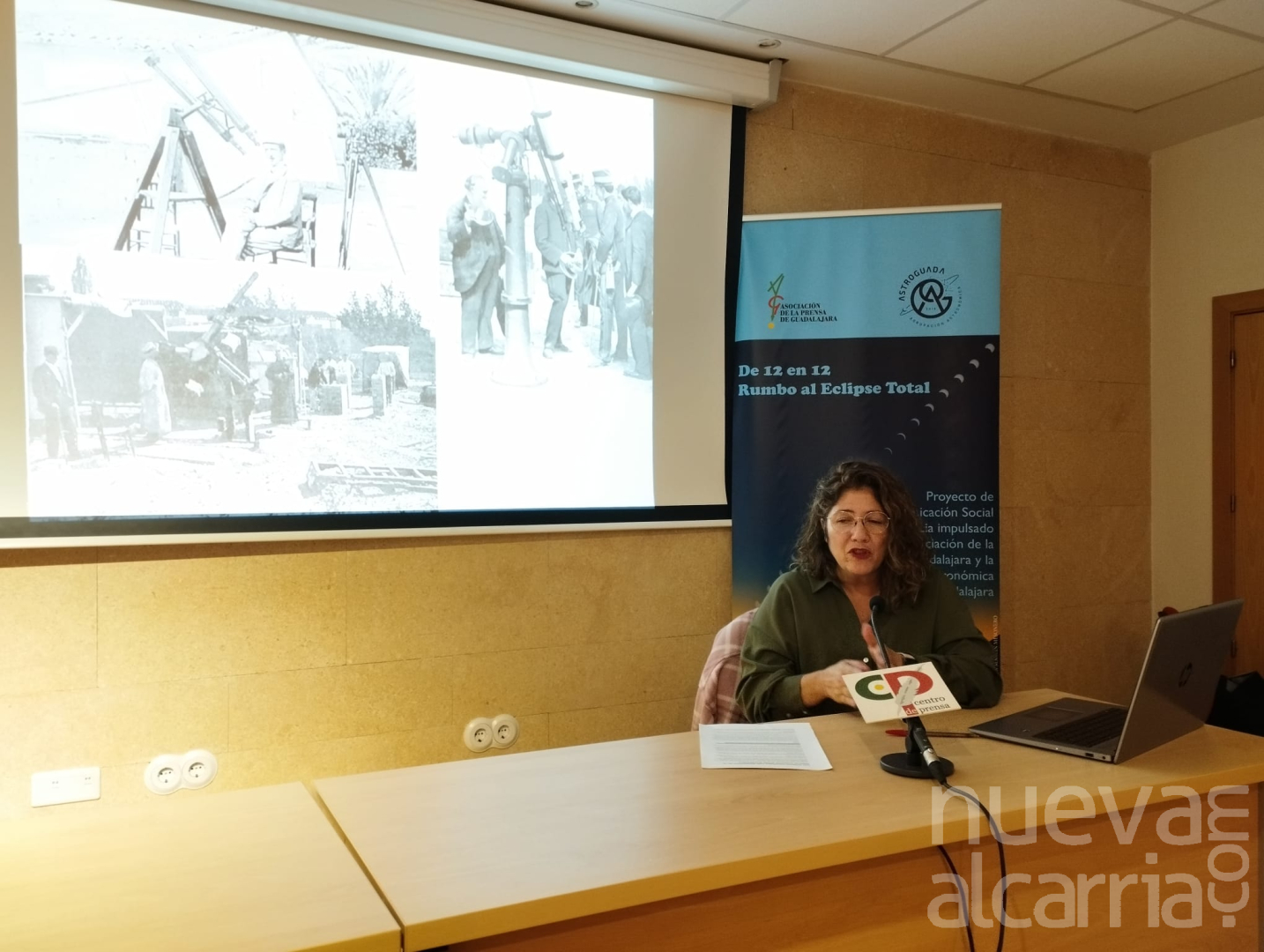 La presentación de la charla estuvo a cargo, como es habitual, de la periodista, Susana Abella, que destacó la figura de Isabel Muñoz de Caravaca, la intelectual afincada en Atienza, que destacó también por su afición a la astronomía, y que tuvo también un papel destacado en estos eclipses. Fue la primera española que formó parte de la Sociedad Astronómica Francesa, lo que le llevó a hacer de anfitriona del famoso astrónomo galo, Camille Flammarion, que visitó España con motivo de los eclipses de 1900, cuando se desplazó a Elche, y de 1905 cuando observó el evento desde la localidad soriana de Almazán, acompañado por la intelectual y su hijo, Jorge Moya.