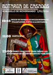 Por su parte, Robledillo de Mohernando celebra su Botarga de Casados el día 1. Los actos arrancan a las 10.45 con el inicio de la ronda de los Dulzaineros de Villaflores junto a la Botarga, seguida de la Santa Misa a las 11.00. Como broche final a esta festividad, a las 13.00 se ofrecerá un vermú popular para todos los asistentes en el Centro Social San José.