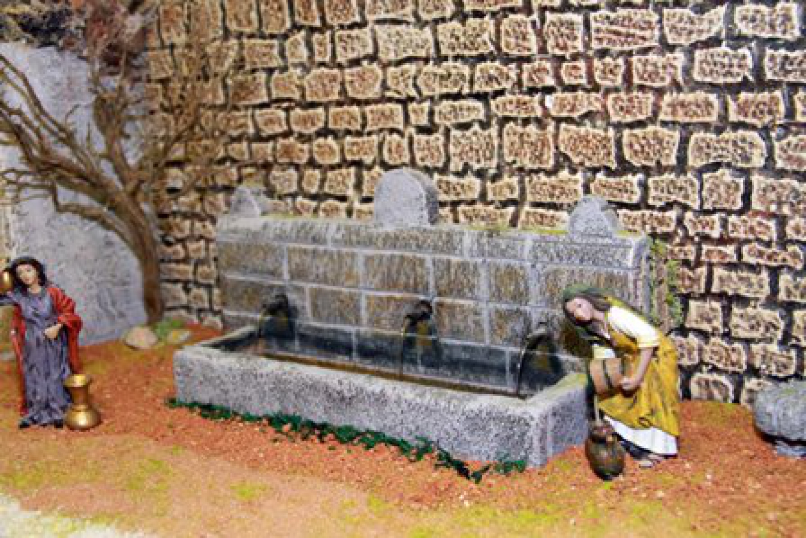Por su cauce, corre un agua cristalina. Un lavadero y una nueva fuente vierten hacia él su agua, igualmente real. Los voluntarios de la Asociación lo han hecho todo a mano, desde septiembre pasado hasta prácticamente el mismo sábado, invirtiendo para ello infinitas horas de trabajo. Las figuritas de personas y animales son de porcelana, compradas.