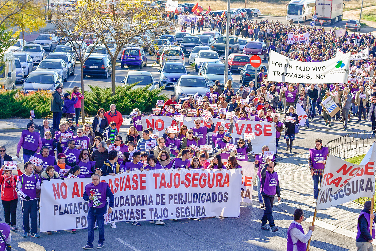 La cabecera se sitúa al 13 por ciento de su capacidad, mientras que el Tajo medio es una cloaca y la cuenca del Segura se encuentra al 38 o 40 por ciento, criticaba José Antonio Vargas, presidente de la Plataforma de Ciudadanos Perjudicados por el Trasvase, colectivo convocante de la manifestación, que contó con el apoyo de la Asociación de Municipios Ribereños.