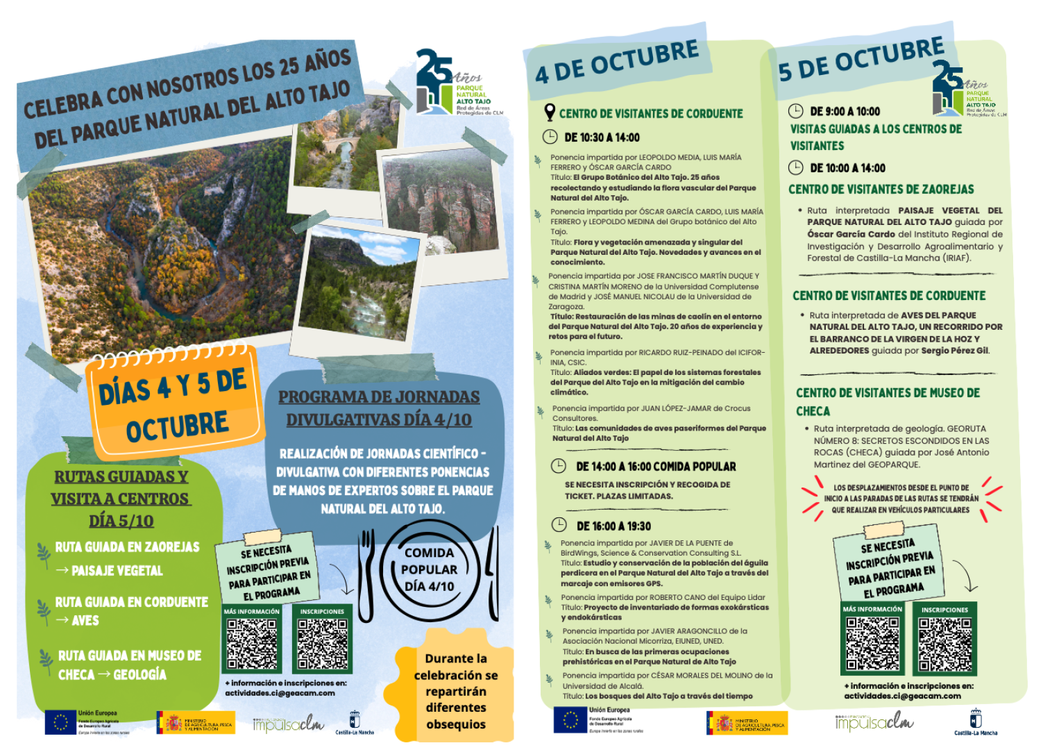 Los días 4 y 5 de octubre de 2025, el Parque Natural de Alto Tajo celebrará su 25 aniversario con una serie de eventos y actividades diseñadas para resaltar la belleza y riqueza natural de esta área protegida