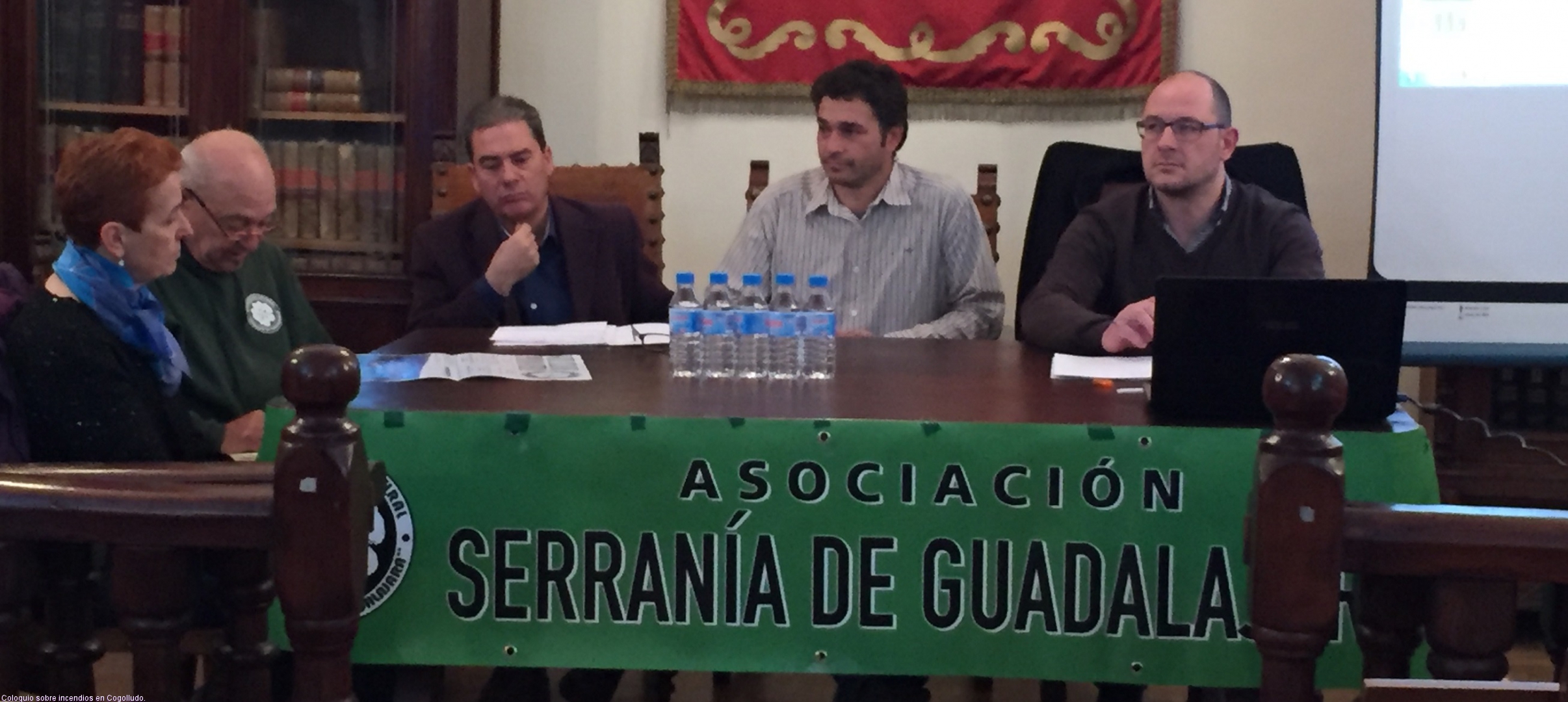 El director provincial de la Consejería de Agricultura, Medio Ambiente y Desarrollo Rural, Santos López, y el jefe de servicio de Política Forestal, Alfredo Chavarría, han intervenido en la charla-coloquio sobre incendios forestales organizada en Cogolludo por la Asociación Cultural Serranía de Guadalajara, dentro de su VIII Ciclo de Primavera.