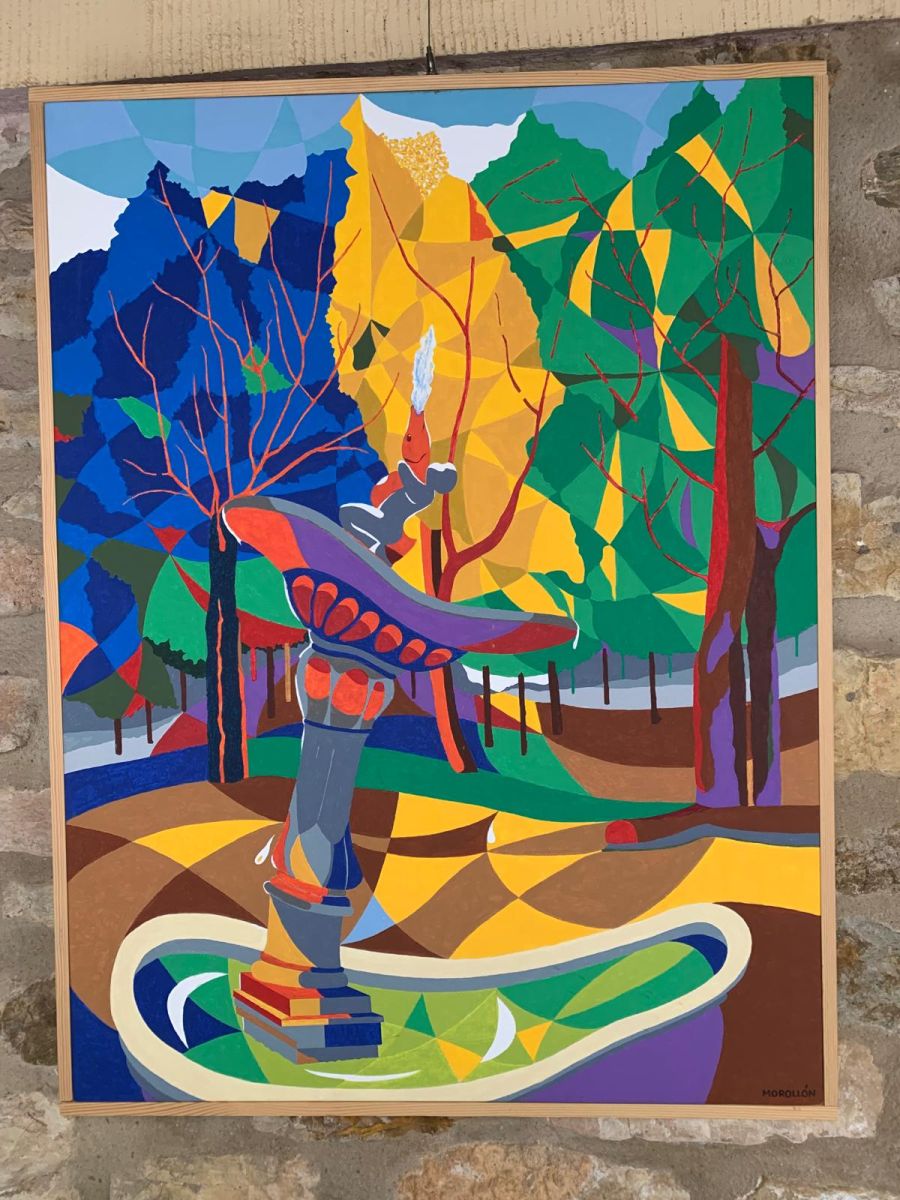 En acrílico, Jesús Ángel Blanco, Diego Moll o Santiago Morollón. En la imagen, Pelea en la fuente, acrílico sobre lienzo de Santiago Morollón.