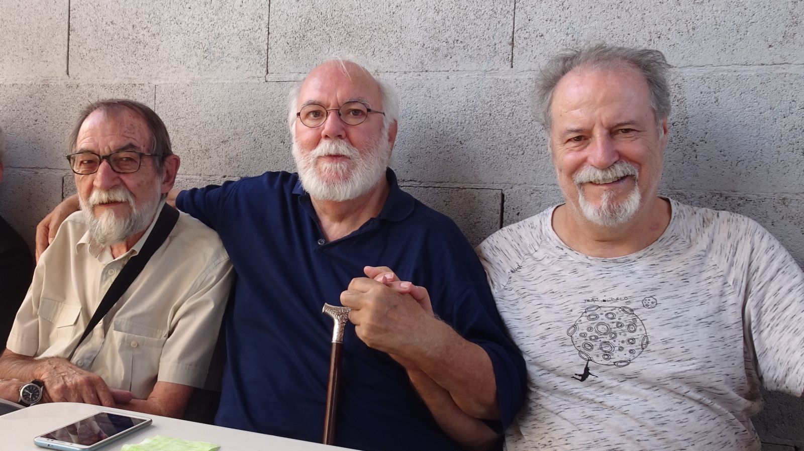Pablo Guerrero con el escritor Félix Maraña y José Antonio Alonso. Rabanera 2022.