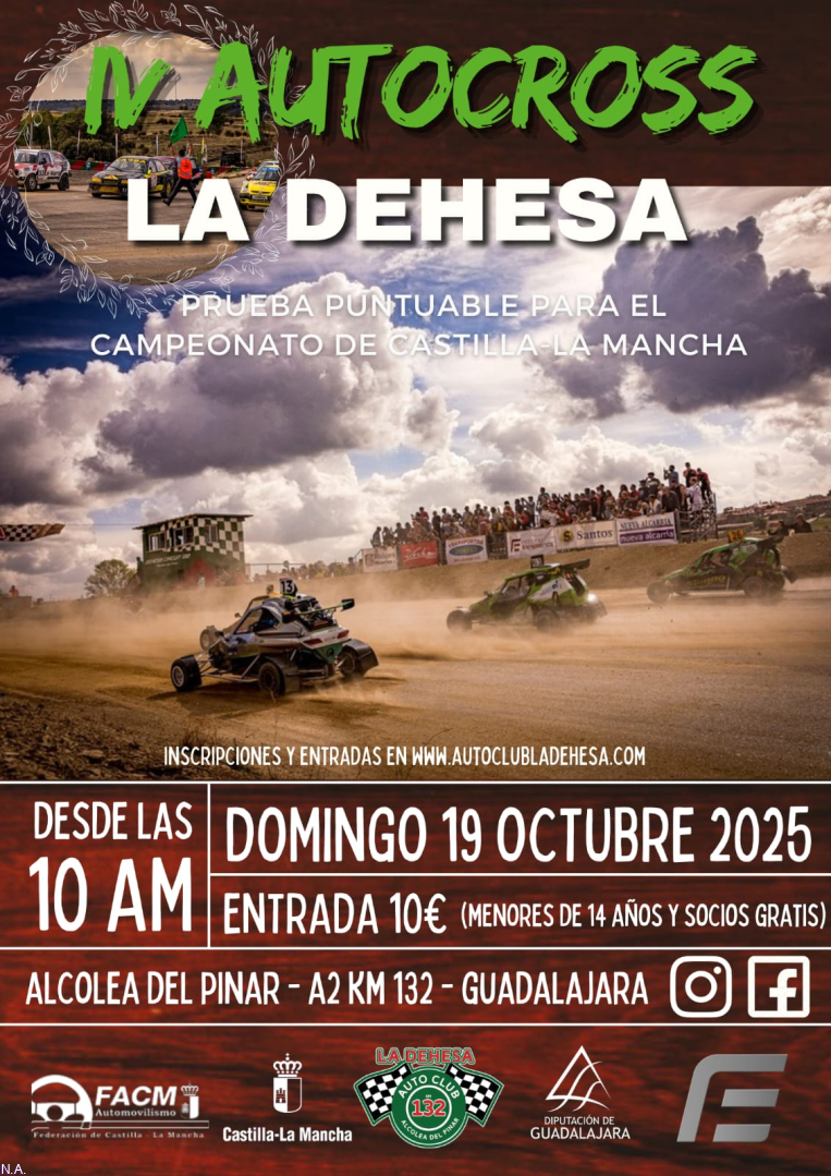 El rugido de los motores volverá a escucharse en Alcolea del Pinar con la celebración del IV Autocross La Dehesa, programado para el domingo 19 de octubre de 2025 desde las 10.00 horas de la mañana. La cita, que se ha consolidado como una de las más esperadas en el calendario automovilístico de la región, será prueba puntuable para el Campeonato de Castilla-La Mancha de Autocross.