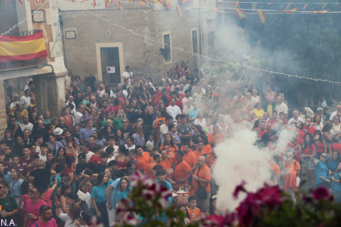 Ya al caer la tarde, la plaza del Ayuntamiento se convirtió en un mosaico de colores con las camisolas de las treinta y una peñas que este año dan vida a la villa. El ambiente alcanzó su punto álgido con el pregón, que en 2025 corrió a cargo de la peña BB y PK, coincidiendo con el trigésimo primer aniversario de su fundación en 1994. Antes, el alcalde, José Miguel López, había deseado a todos los almonacileños que estas fiestas fueran para todos, un momento para disfrutar y aprovechar cada instante. Asimismo, agradeció a la corporación municipal, y muy especialmente a la concejal de Festejos, Lydia López, así como a las peñas, a los voluntarios —con mención especial a Protección Civil— y a los trabajadores del Ayuntamiento, por su esfuerzo y dedicación en la organización de las celebraciones.