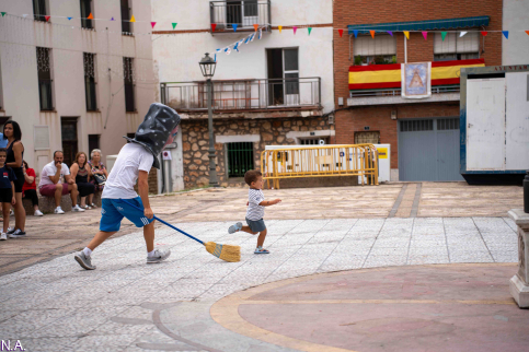La jornada de ayer comenzó a las cinco de la tarde con la salida de los cabezudos en la Plaza del Ayuntamiento, ese anuncio inconfundible de que las fiestas han comenzado y que se repite desde hace, al menos, 50 años. Este año lo volvían a hacer con un aire renovado gracias a la restauración llevada a cabo en el invierno de 2024 por Mayte Rodríguez, almorcileña de adopción y de corazón. El Capitán, el Diablillo, el Payasete, Popeye y doña Rogelia regresaron a las calles, devueltos a la vida por los peñistas de El Descontrol, que los llevaron entre sustos y risas, escobazos y caramelos, despertando la ilusión de los niños y la nostalgia de los mayores.