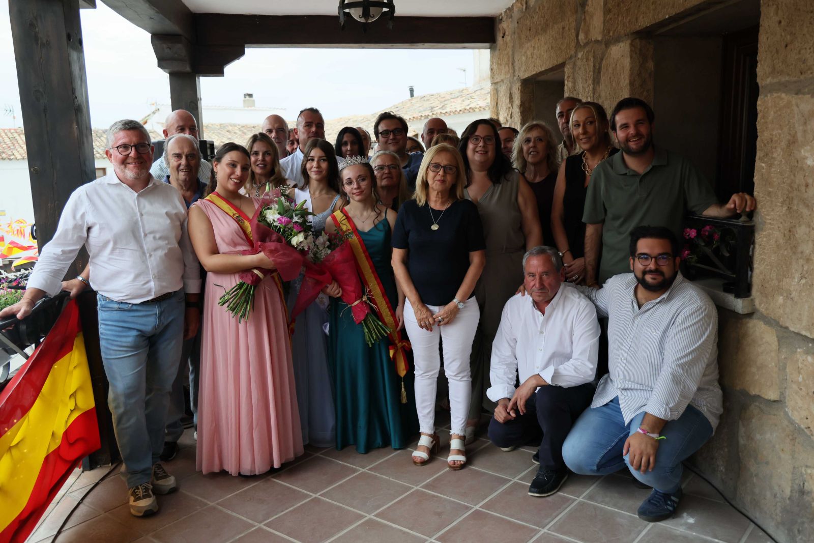 La reina de las fiestas de 2024, Elena Amador, se despidió con emoción de sus vecinos antes de ceder la banda y el ramo a la nueva reina de 2025, Paula Fuentes, quien también dirigió unas palabras llenas de ilusión al pueblo congregado en la plaza.
