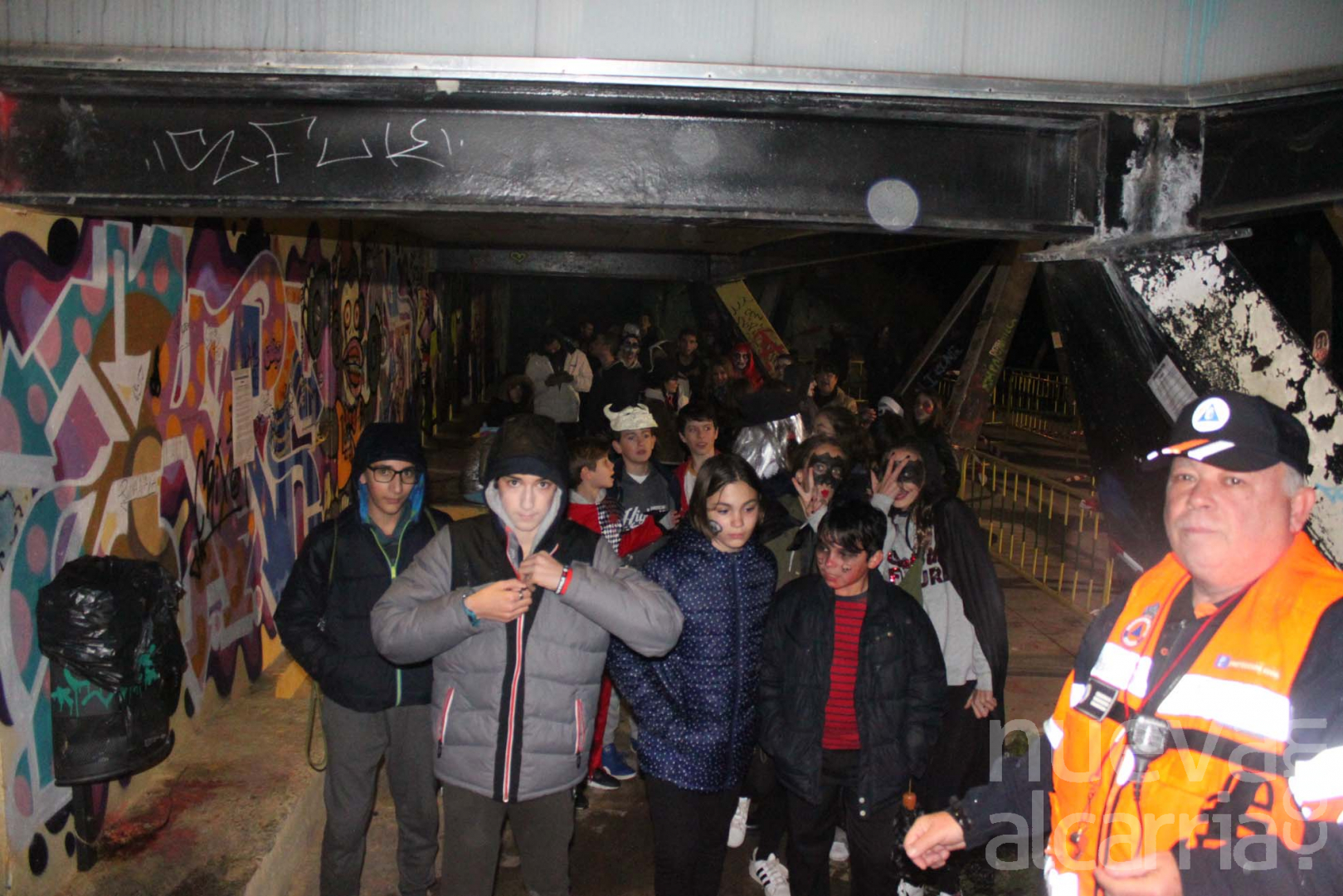 Los voluntarios y voluntarias que cada año lo hacen posible volvieron a dar lo mejor de sí, y dejaron la instalación municipal irreconocible, convertida en un espectacular túnel del terror plagado de escenas de miedo. Cadáveres, zombis, capillas, habitaciones terroríficas, calaveras, lápidas o cruces, junto al juego de luces y sonidos, daban la ambientación necesaria para que los chicos y chicas con sus disfraces compusieran una logradísima estampa que disfrutaron cientos de vecinos que se acercaron al montaje.