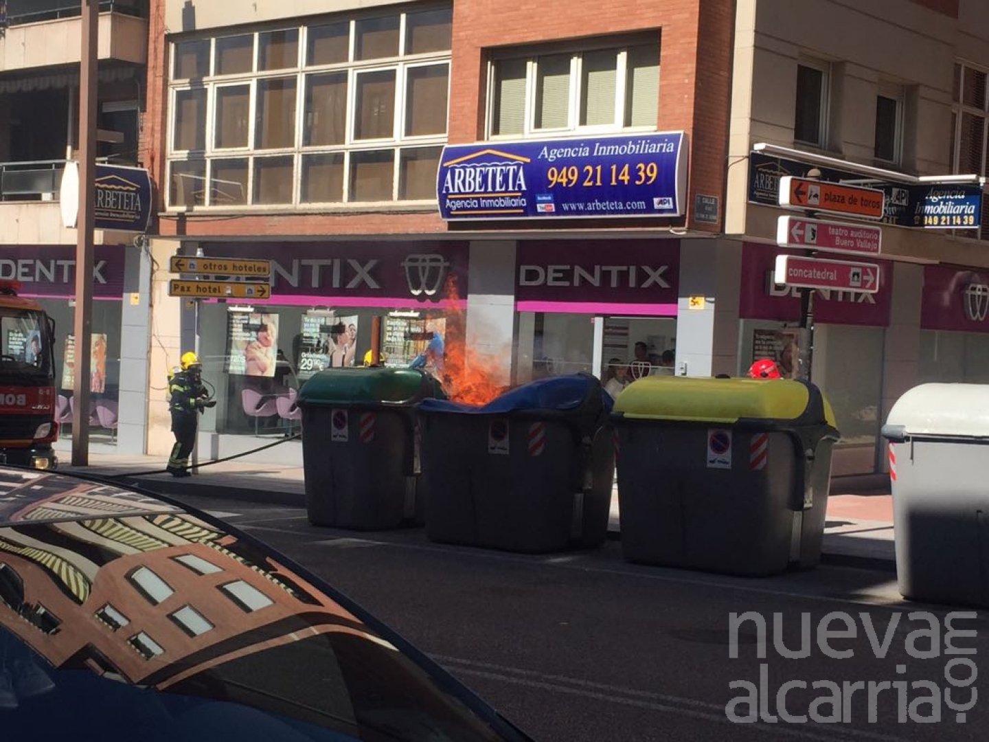 A plena luz del día ha ardido un nuevo contenedor de basura en la capital, en esta ocasión en la calle Virgen del Amparo. Efectivos del Servicio de Extinción de Guadalajara han acudido a toda velocidad para sofocar las llamas. Se desconoce por el momento (siguen en el lugar mientras escribimos estas líneas) el origen de las llamas.