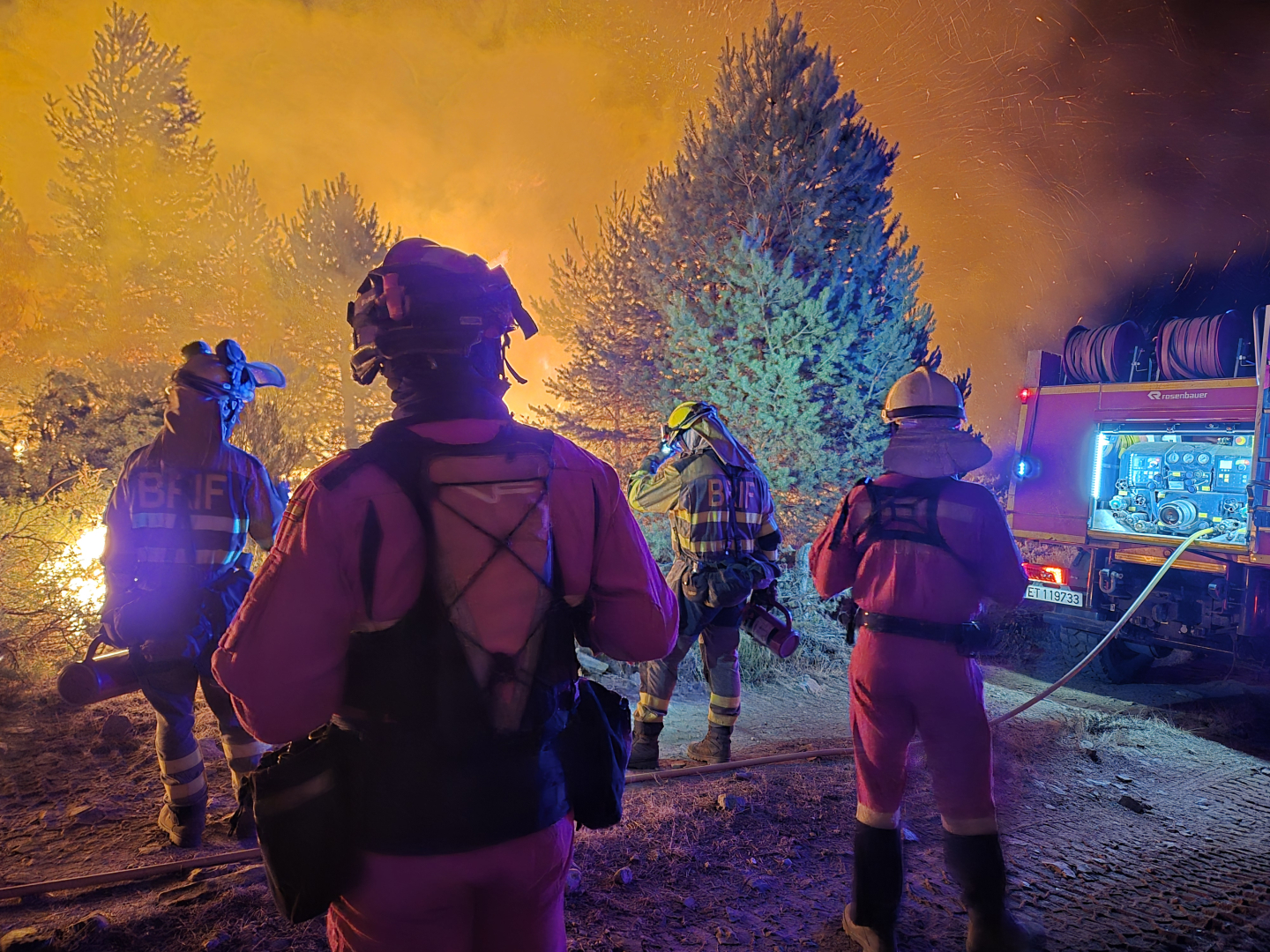 Su llegada al operativo del incendio en Peñalba de la Sierra refuerza la respuesta ante un fuego que ha consumido cerca de 2.000 hectáreas y desafía las condiciones meteorológicas. La alerta se elevó a Nivel 2 por la intensidad de las llamas. Ellos forman parte de un dispositivo compuesto por 303 personas, 25 medios aéreos y 40 terrestres. La UME aporta no solo fuerza, sino capacidad técnica y logística especializada, fundamental en un escenario tan exigente. Sus 154 efectivos, con el apoyo de 53 medios, trabajan en la extinción, frenando el avance de frentes y evitando reactivaciones. Durante la noche, las unidades han realizado, entre otras misiones, el apoyo con autobomba a un fuego técnico junto con la Brigada de Refuerzo Forestal de Lubia (BRIFLUBIA) -Soria- y han continuado en misiones de ataque directo en los sectores que les han sido asignados. Por el día apoyan en las tareas que les sean asignadas por sus mandos.