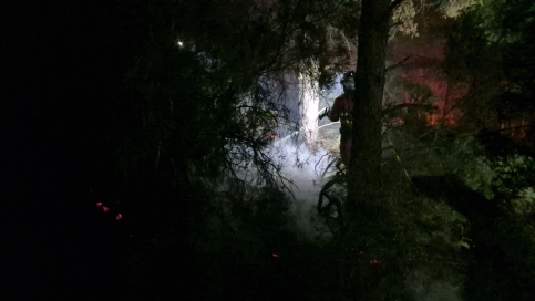 Cuando el cielo rojizo cubre la ladera al mediodía, los soldados de la UME siguen avanzando: equipados, alerta, apenas visibles bajo cascos y máscaras, enfrentando humo, calor y viento. La realidad para ellos, y sus compañeros de lucha, es que es siempre de noche. La oscura niebla tóxica se apodera del paisaje. Solo hay luz cuando, de forma traicionera, brotan las llamas, cuando les esperan impasibles y les desafían a que sean sofocadas o cuando se divisan al horizonte. No es heroísmo grandilocuente, sino disciplina, entrenamiento y entrega.