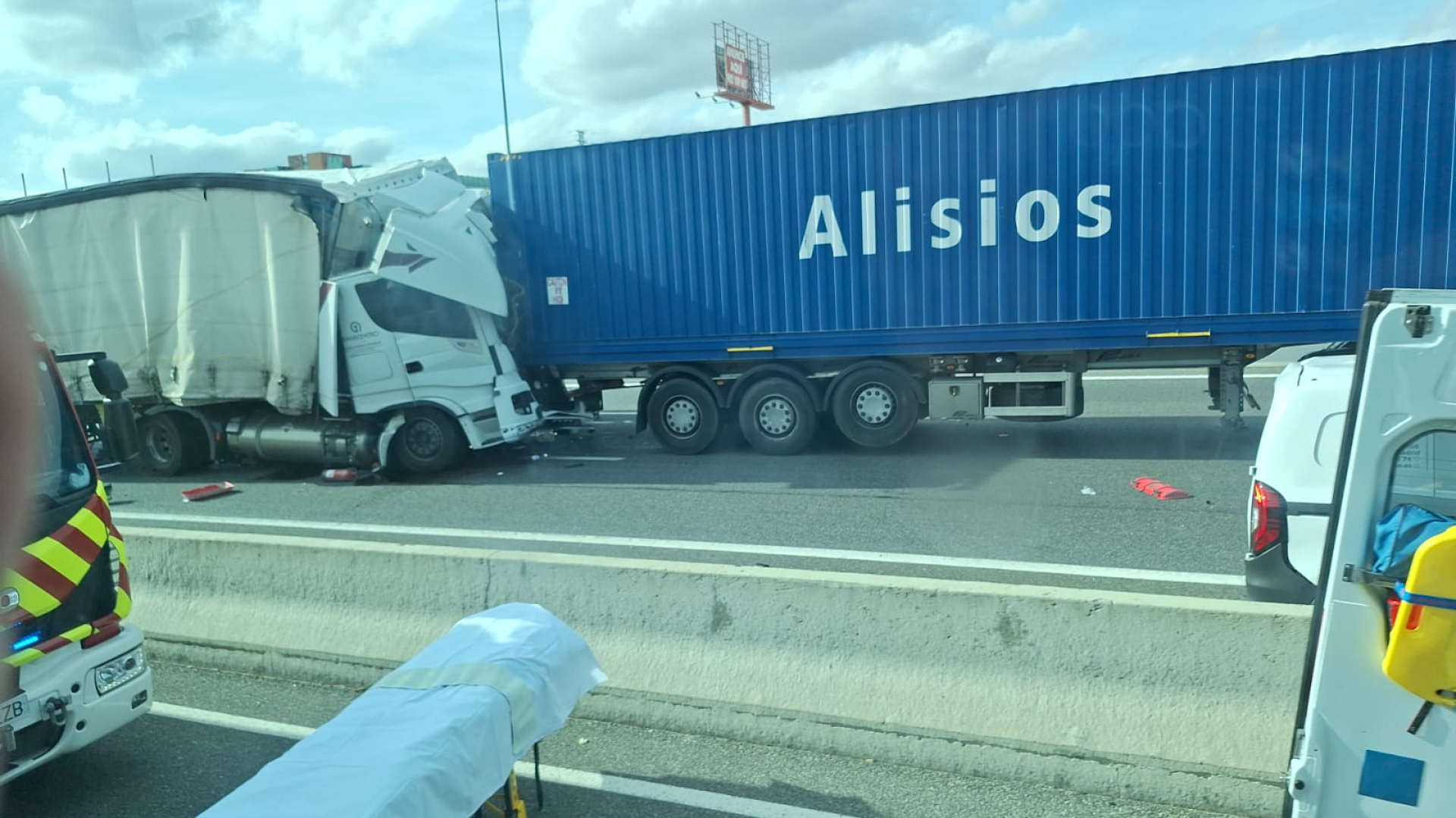 Caos en la A-2: un camión arde tras chocar con otro y causa kilómetros de retenciones