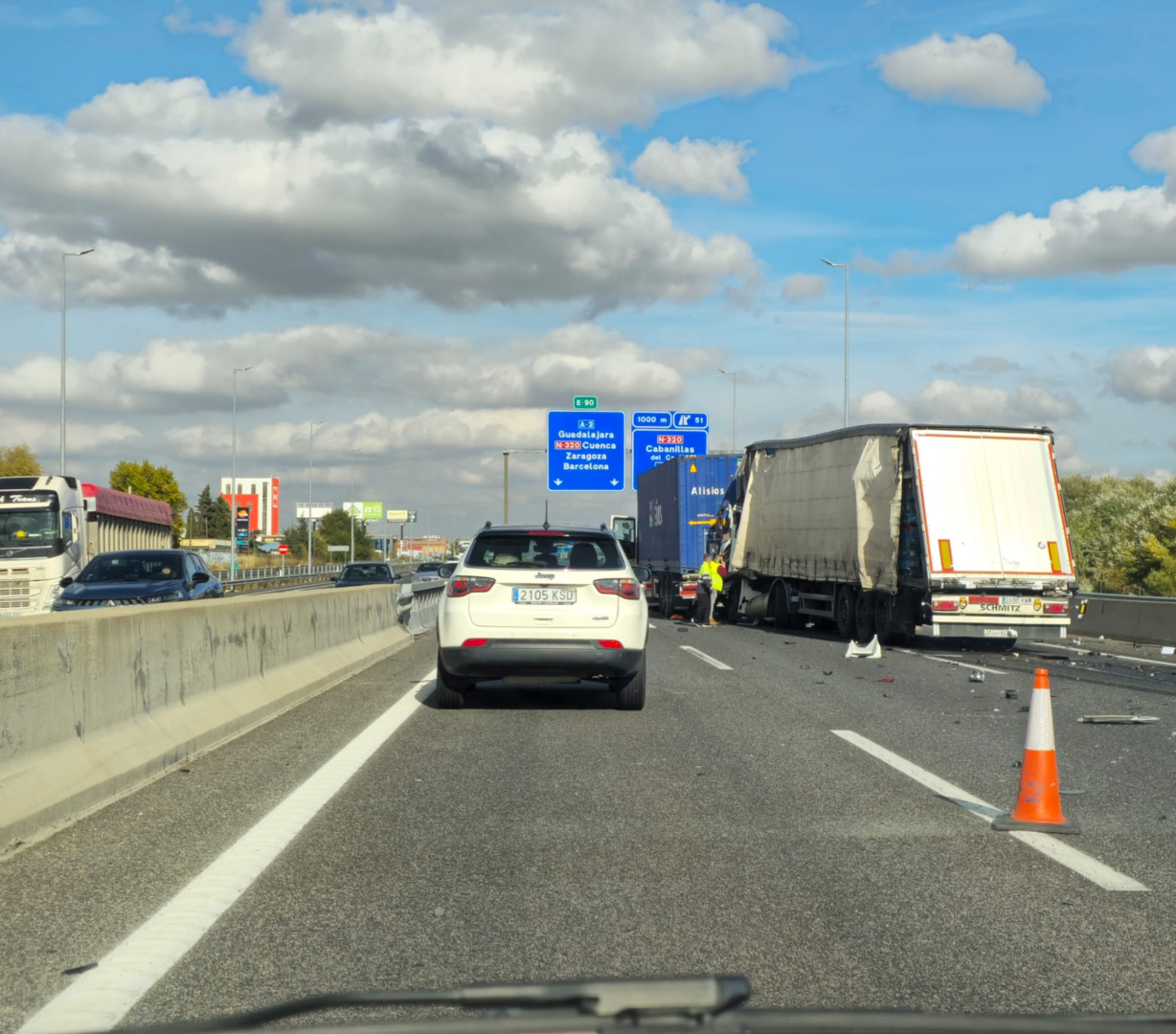 El regreso a casa se complica este martes para muchos guadalajareños debido a un aparatoso accidente ocurrido en la A-2, a la altura del kilómetro 49,5 en sentido Zaragoza. El siniestro, registrado a las 14:12 horas, ha provocado importantes retenciones que alcanzan ya el término municipal de Azuqueca de Henares.