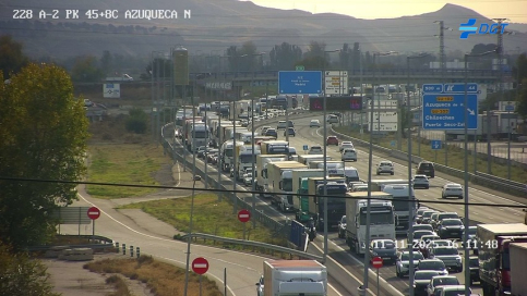 El tráfico permanece muy condicionado en la zona, ya que de los tres carriles del tramo afectado permanecen cortados el central y el derecho, lo que está provocando largas colas y un atasco de varios kilómetros en dirección Zaragoza.