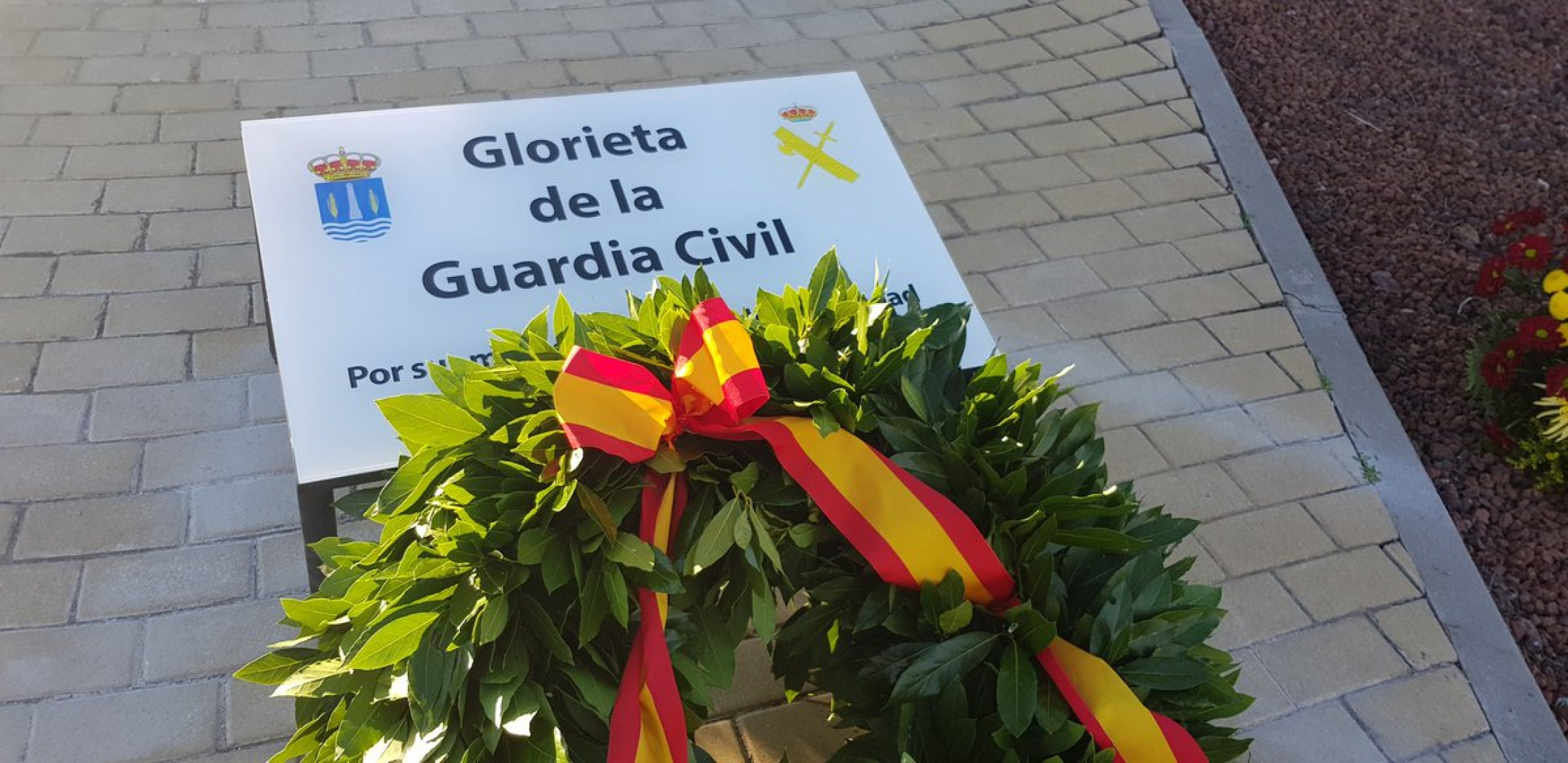 El acto comenzó con un minuto de silencio por la muerte de un guardia civil en Granada esta semana, tras lo cual se procedió al izado de la bandera en el mástil que se instaló en la misma rotonda, momento que estuvo acompañado por la interpretación del himno nacional a cargo de la Banda Municipal de Música.