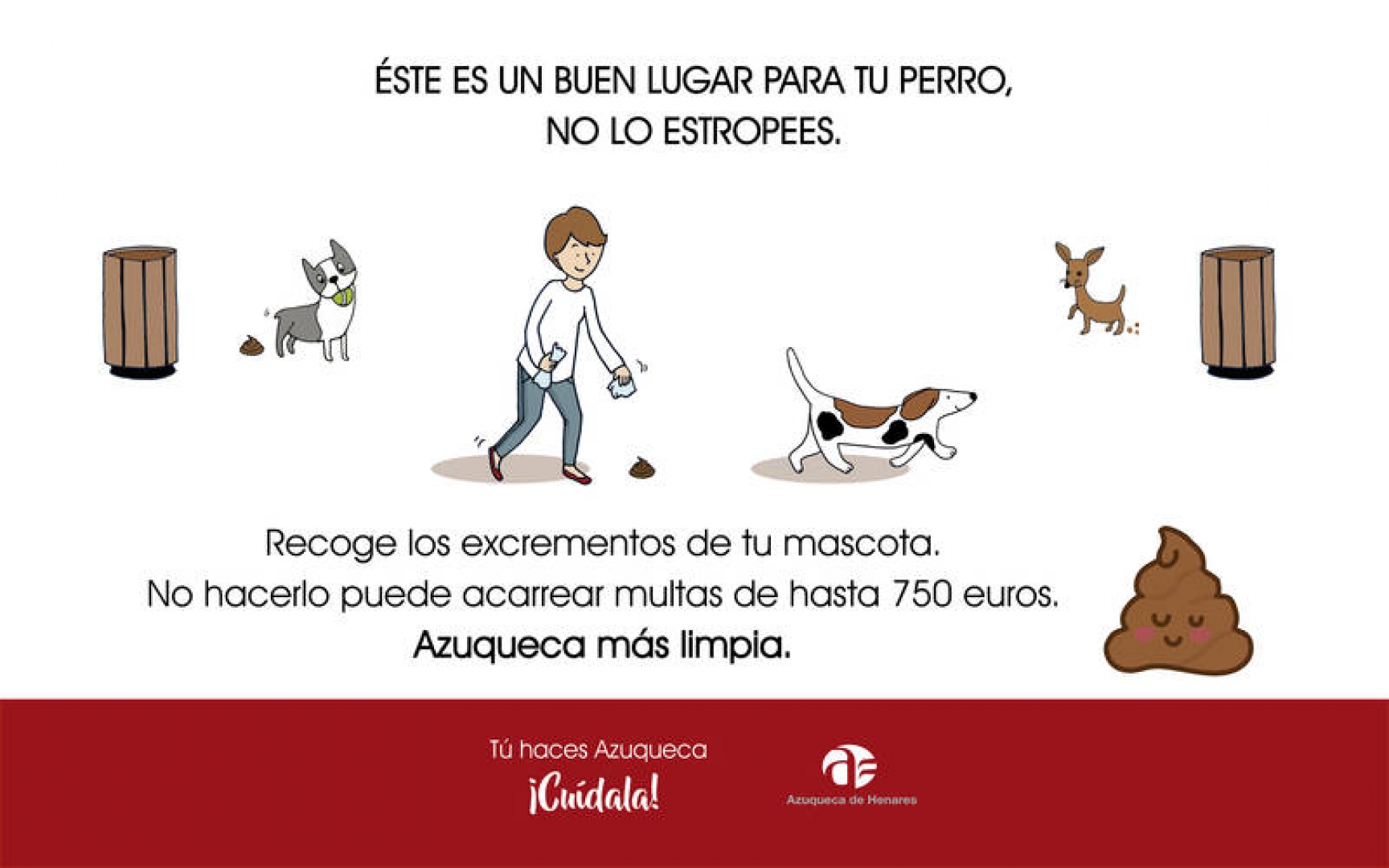 El Ayuntamiento de Azuqueca de Henares ha intensificado las acciones para evitar la presencia de excrementos caninos en las calles de la ciudad. El concejal de Limpieza y Seguridad, Sergio de Luz, ha explicado que "se va a actuar en distintos niveles: incrementando las medidas de concienciación dirigidas a los propietarios de animales, y, al tiempo, aumentando la vigilancia y las sanciones a los infractores". La ordenanza municipal que regula la Tenencia de Animales en Azuqueca establece la obligatoriedad de los propietarios de retirar las deyecciones que sus mascotas depositen en aceras o zonas de tránsito peatonal, parques o jardines y contempla sanciones de hasta 750 euros para los infractores.