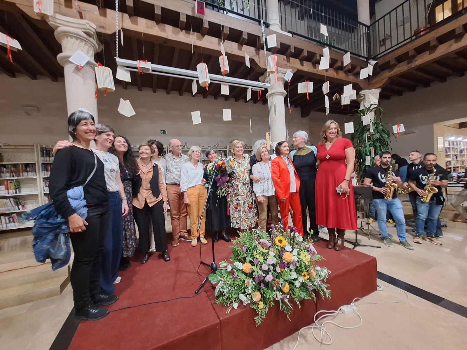 Alegría, por la música de Klandestinos y la reunión de muchos amigos, entre ellos narradores llegados de media España, miembros de clubes de lectura, autoridades políticas y miembros de la sociedad civil de Guadalajara, en el homenaje que este viernes ha recibido Blanca Calvo, que de manera oficial da ya nombre a la biblioteca pública provincial, después de pasar el correspondiente expediente, a propuesta del Seminario de Literatura Infantil y Juvenil, que la realizó al Gobierno Regional, que lo elevó al Ministerio de Cultura que lo ha aprobado. No se ha podido poner la placa en la puerta, explicó Pablo Bellido, presidente de las Cortes de Castilla-La Mancha, por cuestiones burocráticas, pero ya es un hecho. La consejera de Igualdad, Sara Simón, la delegada de la Junta de Comunidades; la subdelegada de Gobierno,Susana Cabellos; la delegada de la Junta de Comunidades,Rosa García; el diputado nacional, Alberto Rojo; la senadora, Araceli Martínez, la delegada provincial de Igualdad, Laura Gil, varios concejales del Grupo Socialista y Susana Martínez, de Aike, y personalidades como el vicerrector de la Universidad de Alcalá, Carmelo García; la directora de Relaciones Institucionales, Concha Carrasco; la presidenta de la Asociación de la Prensa, Mar Corral, el pintor, Jesús Campoamor o la escritora, Gracia Iglesias, fueron algunas de las personas que llenaron por completo el bello patio central de la biblioteca, en un acto, organizado por el Seminario de Literatura Infantil y Juvenil, con su presidenta Concha Carlavilla, a la cabeza, lleno de emoción.