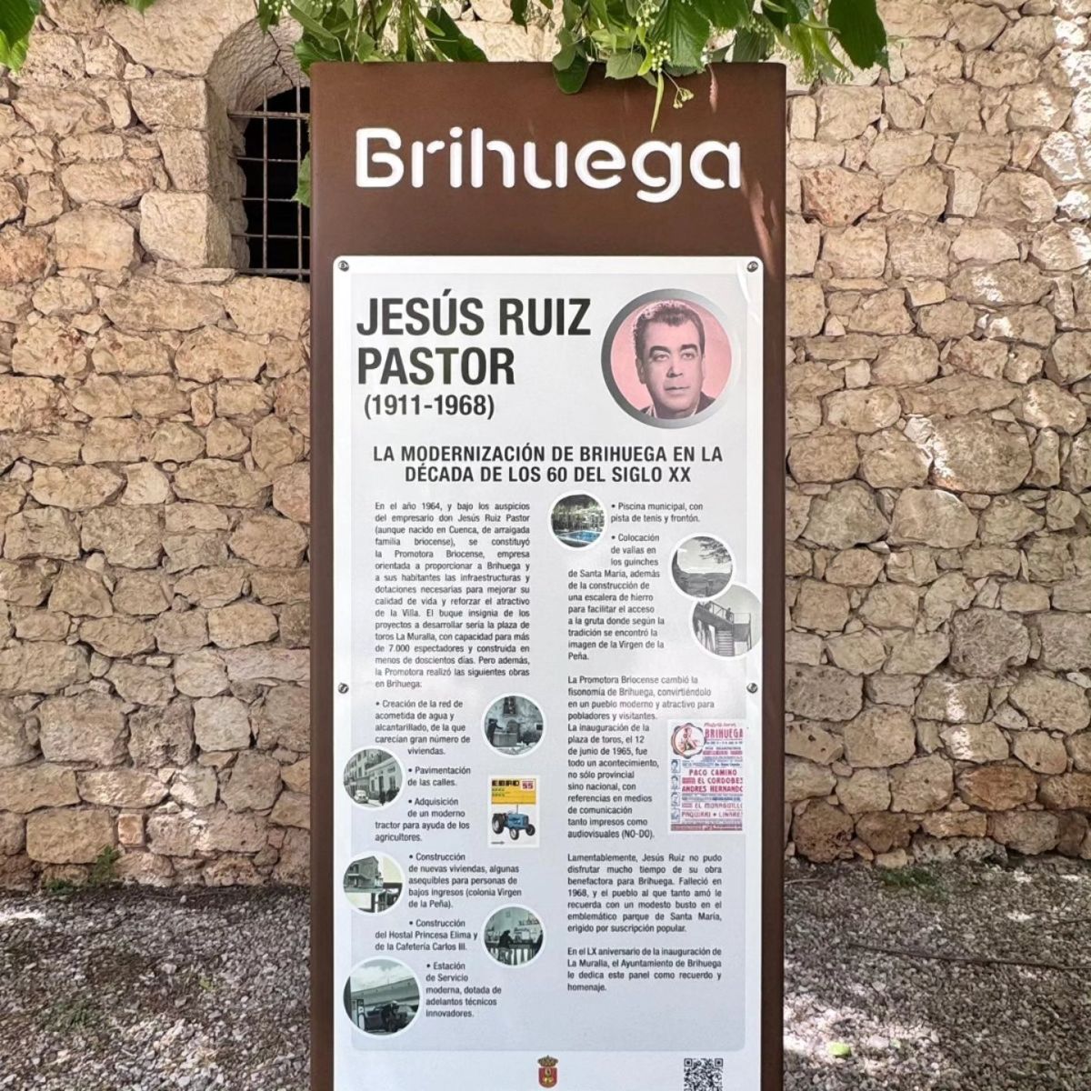 En el marco del 60 aniversario de la Plaza de Toros La Muralla, Brihuega rindió homenaje este sábado a Jesús Ruiz Pastor, figura clave en la transformación del municipio durante los años 60, con la inauguración de un tótem informativo junto al coso taurino. El panel recuerda no solo sus logros como promotor, sino también su vínculo personal con esta tierra que eligió y amó como propia.