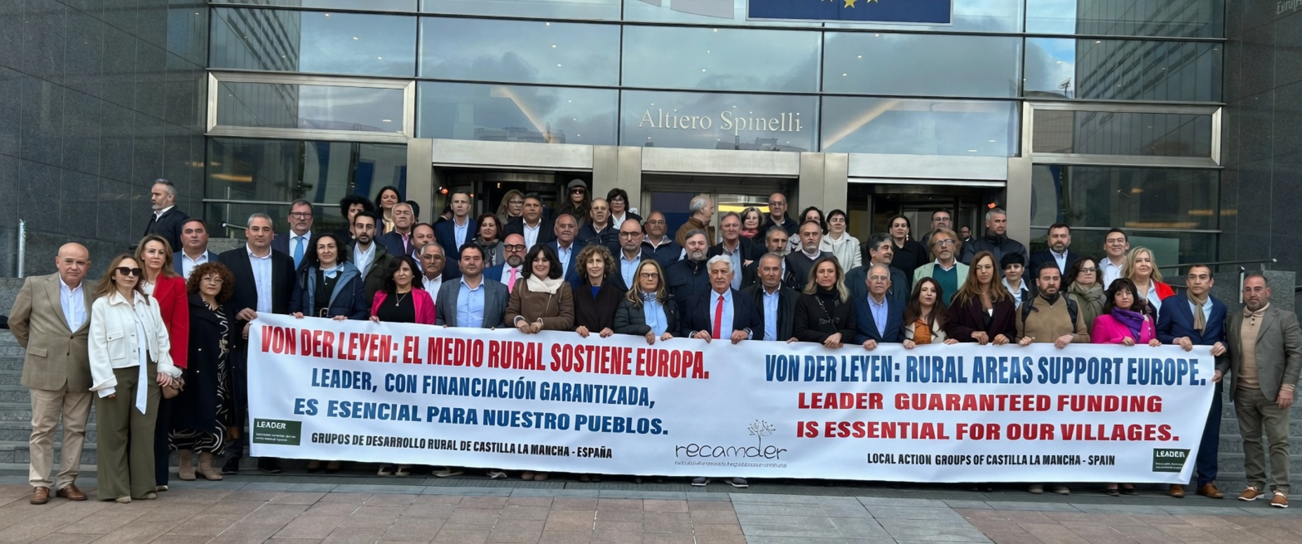 Este elenco reivindicativo lo componen presidentes, gerentes e integrantes de las juntas directivas, así como el consejero de Agricultura, Ganadería y Desarrollo Rural, Julián Martínez Lizán. Todos a una llevan la voz de los 884 municipios y sus 1,2 millones de habitantes hasta el Parlamento Europeo y el Comité Europeo de las Regiones. Han entregado un manifiesto con más de 4.000 firmas y el acuerdo adoptado en la Asamblea de RECAMDER.