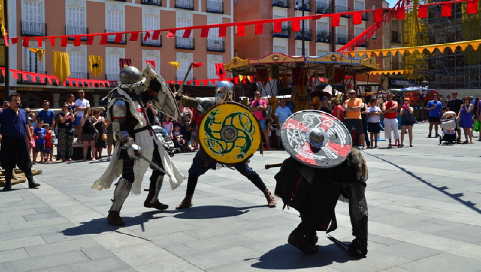 Caballeros andantes para revitalizar el casco urbano. Es lo que pensaron algunos comerciantes del centro de Guadalajara cuando decidieron jugársela con la I Fiesta Medieval de Guadalajara. Y vaya si lo consiguieron. Pese a las altas temperaturas, las calles más céntricas de la ciudad estuvieron el sábado llenas de visitantes, muchos que por casualidad se encontraban con las numerosas actividades organizadas por el bar Dublin House en colaboración con el Ayuntamiento de Guadalajara y colectivos como la Asociación Paseo Comercial Miguel Fluiters.