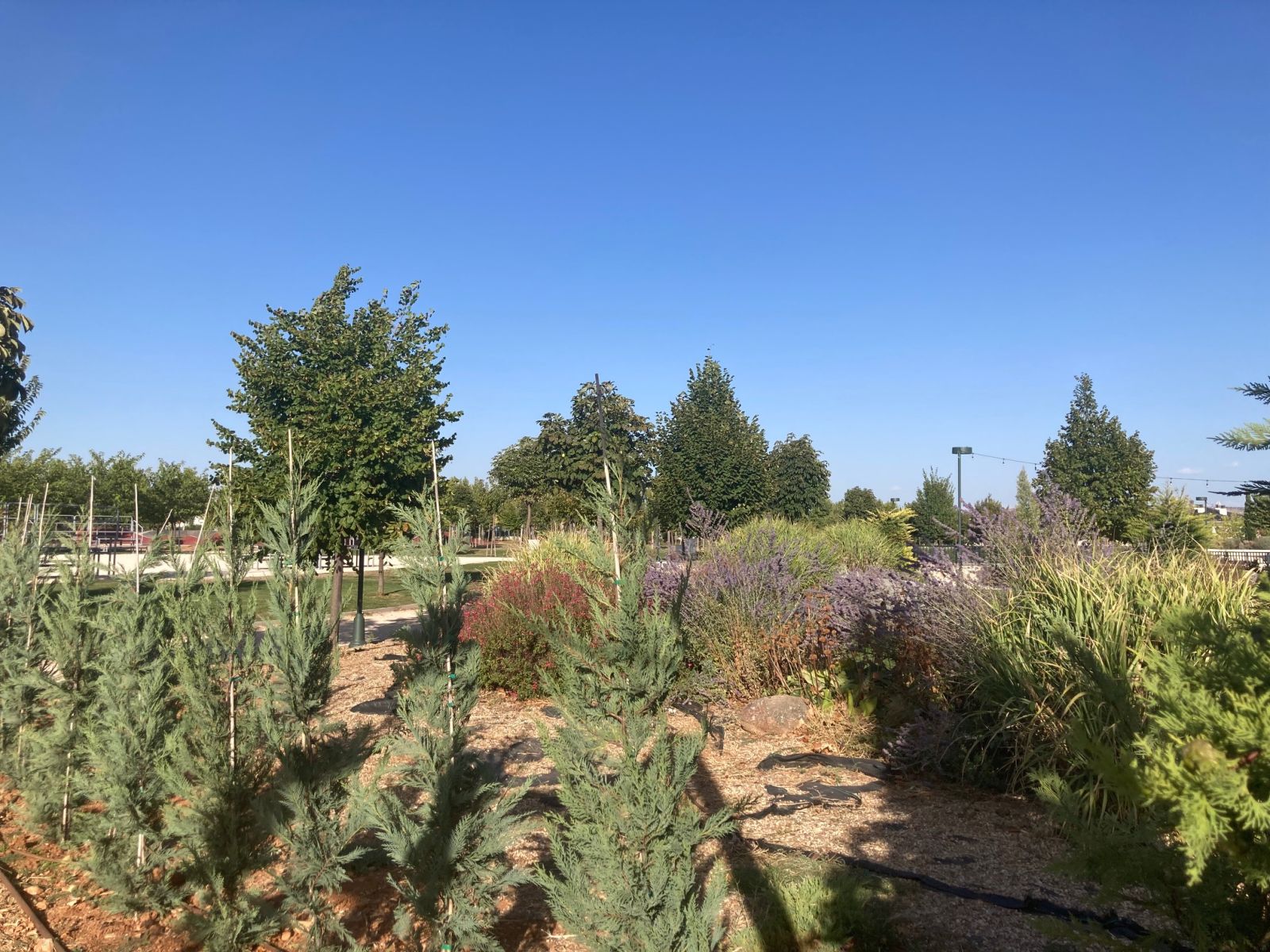 En cuanto a la plantación de árboles en zonas estanciales, debido a la demanda de vecinos y usuarios de más zonas de sombra para el disfrute del parque en verano, se ha procedido a la plantación de árboles de hoja caediza y alguna conífera de gran porte. En el parterre que se encuentra la calistenia se plantaron tres ejemplares de “paulonia tomentosa” y tres “cedros deodara”. En el parterre de la zona polideportiva infantil habrá una “paulonia tomentosa”; en el parterre central de eventos, otra paulonia; en el parterre de las moreras, ocho ejemplares de “morus alba fruitless”, y en el parterre del ginkgo biloba se pueden ver tres “morus” más.