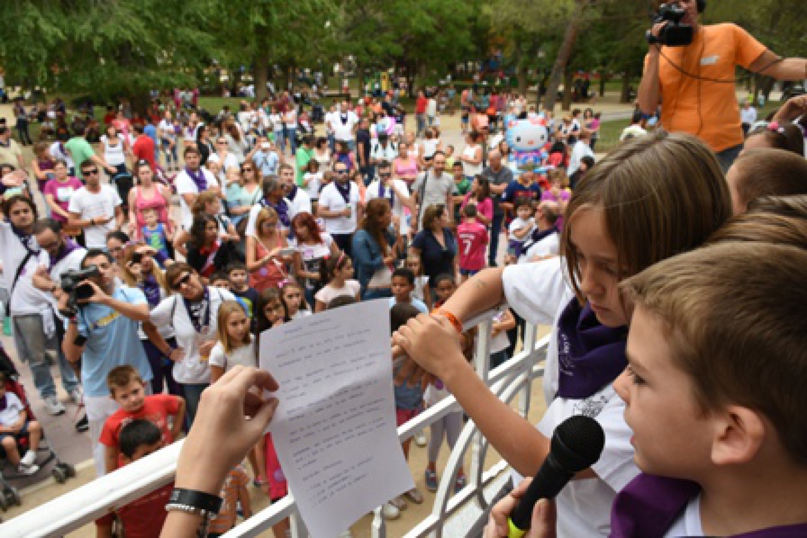 Los niños aludieron al orgullo de ser de Guadalajara, de ser de la peña Caracol y de disfrutar de las Ferias y Fiestas. Después, gritaron ¡Viva la Virgen de la Antigua!, ¡Viva Guadalajara! ¡Viva el Caracol!, tras lo cual lanzaron globos y confeti para empezar una refrescante fiesta de la espuma.