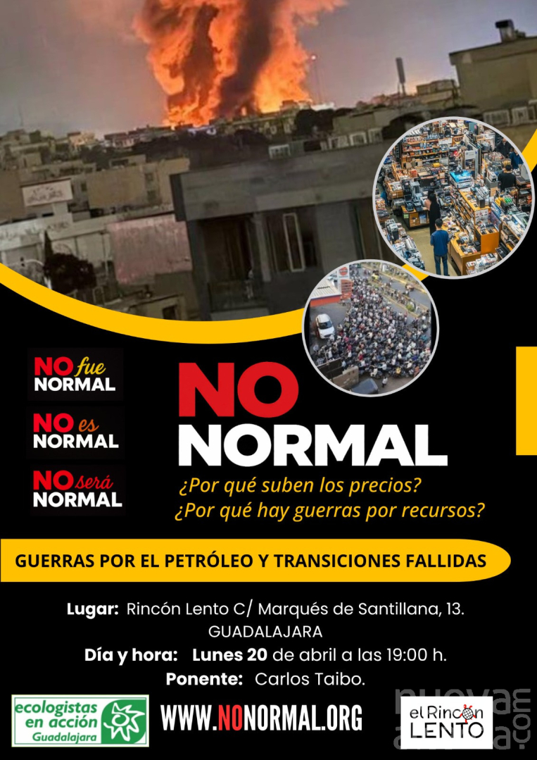Guadalajara acogerá el próximo lunes 20 de abril, a las 19.00 horas, una de las paradas del “No Normal Tour”, una gira impulsada por científicos y divulgadores vinculados a la figura de Antonio Turiel para analizar las consecuencias de la guerra de Irán y de la crisis abierta en el estrecho de Ormuz. La sesión tendrá lugar en El Rincón Lento y correrá a cargo del escritor y politólogo Carlos Taibo.