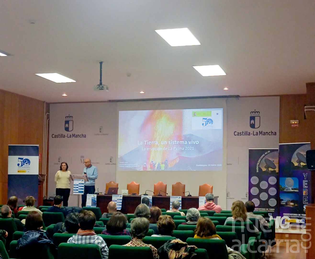 El ciclo “Ciencia y tecnología desde Guadalajara”, organizado para conmemorar el 50 aniversario del Observatorio de Yebes, celebró una nueva sesión en el salón de actos del Museo Provincial de Guadalajara, con la participación de Carmen López Moreno, subdirectora general de Vigilancia, Alerta y Estudios Geofísicos del Instituto Geográfico Nacional (IGN), organismo al que también está adscrito el centro astronómico de Yebes.