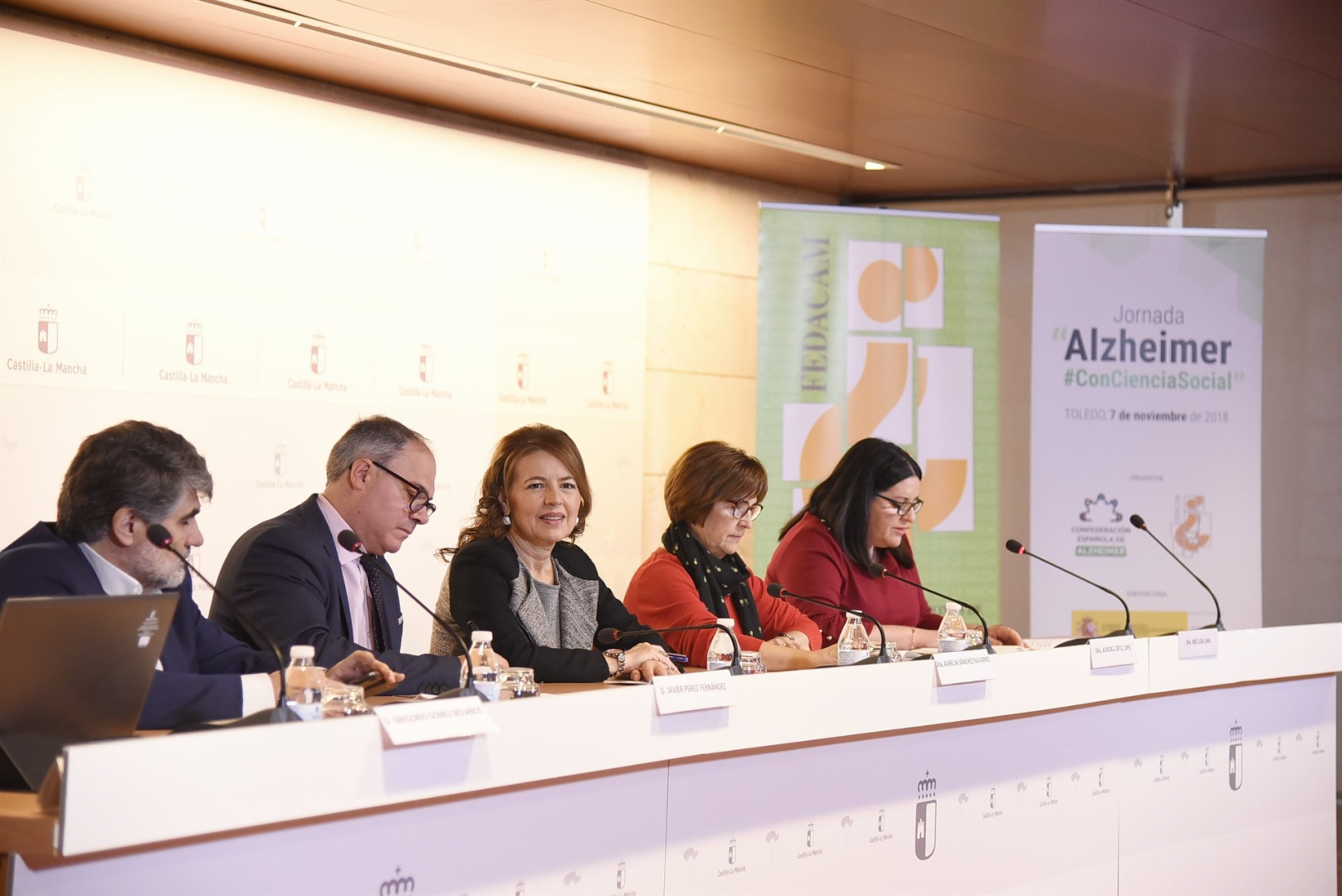 Así lo ha destacado la consejera de Bienestar Social, Aurelia Sánchez, durante la inauguración de la Jornada de Alzheimer '#ConCienciaSocial', en la que ha estado acompañada por el director general de Mayores y Personas con Discapacidad, Javier Pérez; el director provincial de Bienestar Social de Toledo, Gregorio Gómez; por la presidenta de la Federación de Asociaciones de Amigos y Familiares de Personas con Enfermedad de Alzheimer de Castilla La Mancha (FEDACAM), Inés Losa; y por la vocal de la Confederación Española de Alzheimer (CEAFA), Aurora Ortiz.