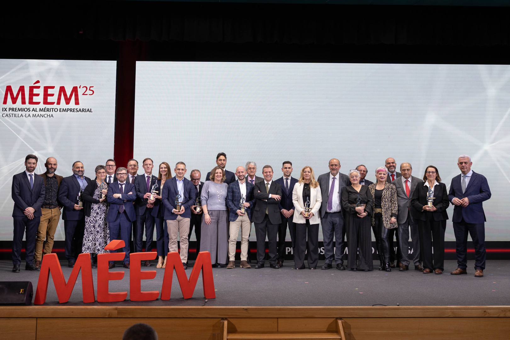 La Casa de la Cultura de Cabanillas del Campo se ha vestido de gala para acoger este martes la IX edición de los Premios al Mérito Empresarial de Castilla-La Mancha (Méem 2025), un acto presidido por el jefe del Ejecutivo regional, Emiliano García-Page, que ha puesto en valor el talento, la innovación, la sostenibilidad y la capacidad de creación de empleo de diez empresas procedentes de las cinco provincias de la región.