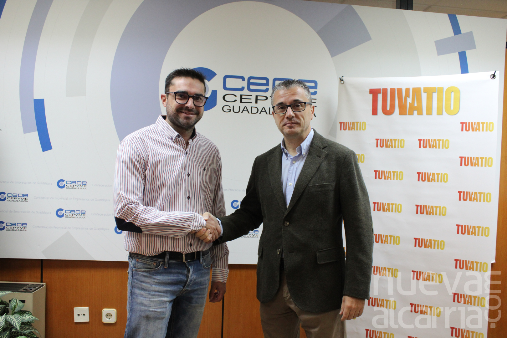 El convenio fue suscrito por Javier Arriola, secretario general de CEOE-CEPYME Guadalajara, y Andrés Saboya, gerente de Tuvatio.