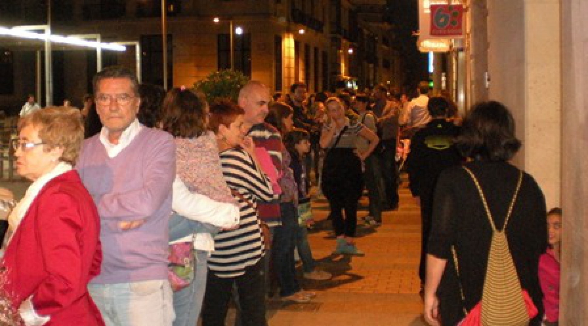 Los congregados consiguieron rodear la manzana de la calle Benito Chavarri, plaza del Jardinillo, plaza López de Haro y vuelta a Benito Chavarri en una convocatoria exitosa y original que contó con un claro apoyo popular. Para amenizar la velada, Los Klandestinos tocaron un buen número de canciones justo frente a una gran pancarta en la que podía leerse 'No al cierre del Teatro Moderno'. Junto a la puerta, miembros de la Asociación Amigos del Teatro Moderno recogían firmas para hacer nuevos socios o para solidarizarse contra la clausura de este espacio cultural. Además, también desde la asociación repartieron un folleto informativo de la nueva programación alternativa que se hará a las puertas del Moderno para pedir, precisamente, que esas mismas puertas vuelvan a abrirse y que la sala de butacas no siga cogiendo polvo por el desuso.