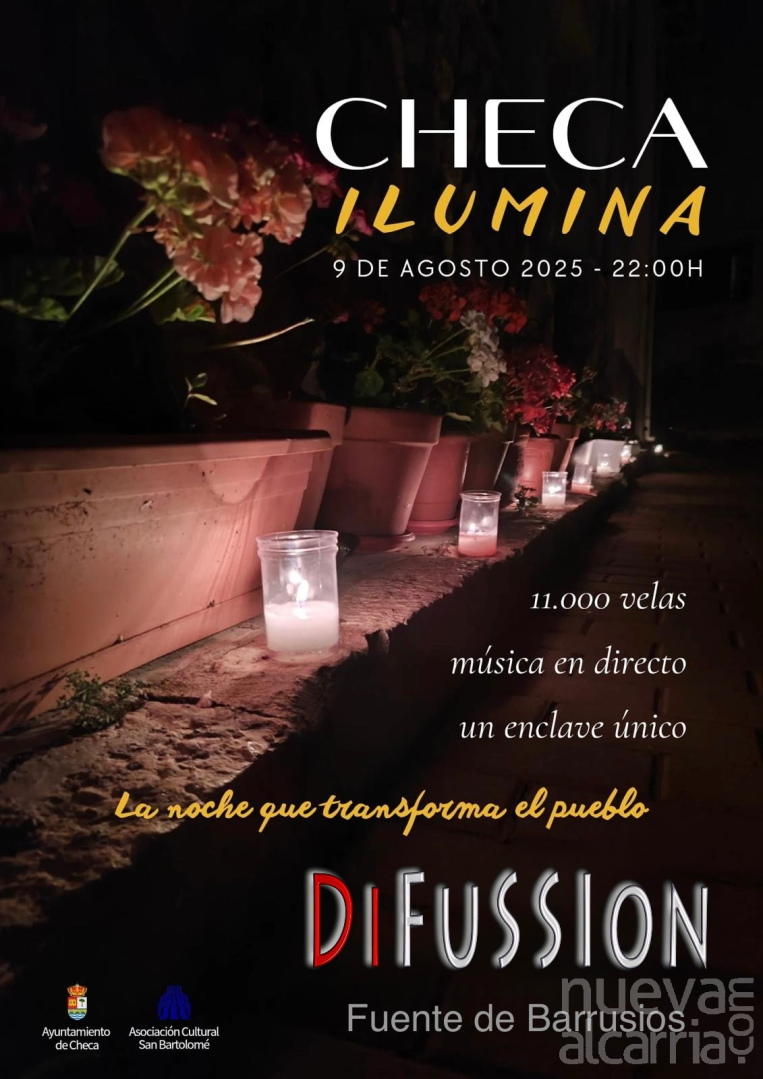 El municipio de Checa acogerá este sábado, 9 de agosto, una nueva edición del evento “Checa Ilumina”. A partir de las 22:00 horas, las velas transformarán calles y plazas del pueblo en un escenario luminoso, acompañado de actuaciones artísticas repartidas por diversos rincones emblemáticos.